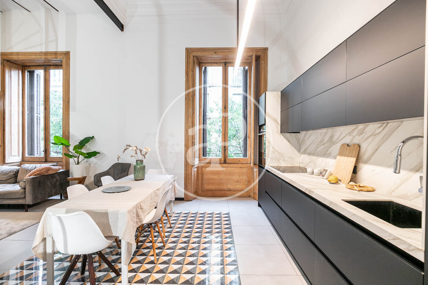 Se trata de una de las zonas más céntricas de la ciudad, considerada por muchos, el corazón de Barcelona con una gran colección de edificios modernistas. Una zona muy cotizada con exclusivos áticos y fabulosos apartamentos en fincas regias. Muchos de los edificios del Eixample son obra de arquitectos modernistas que conservan elementos originales fantásticos; techos altos, suelos embaldosados con mosaicos, techos con cornisa y mucha luz natural. La Avenida Diagonal, el Paseo de Gracia y Rambla Cataluña, con sus selectas boutiques internacionales, prestigiosos despachos y algunos de los mejores restaurantes de Barcelona, culminan la oferta de este distrito, excelentemente enlazado con el transporte público y rodeado una amplia oferta turística.
