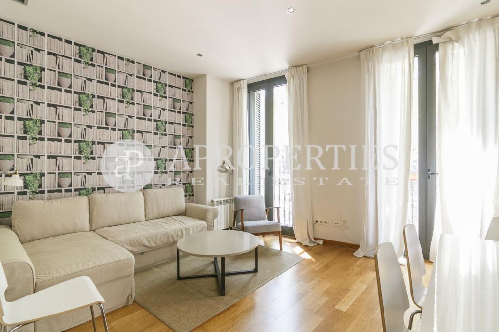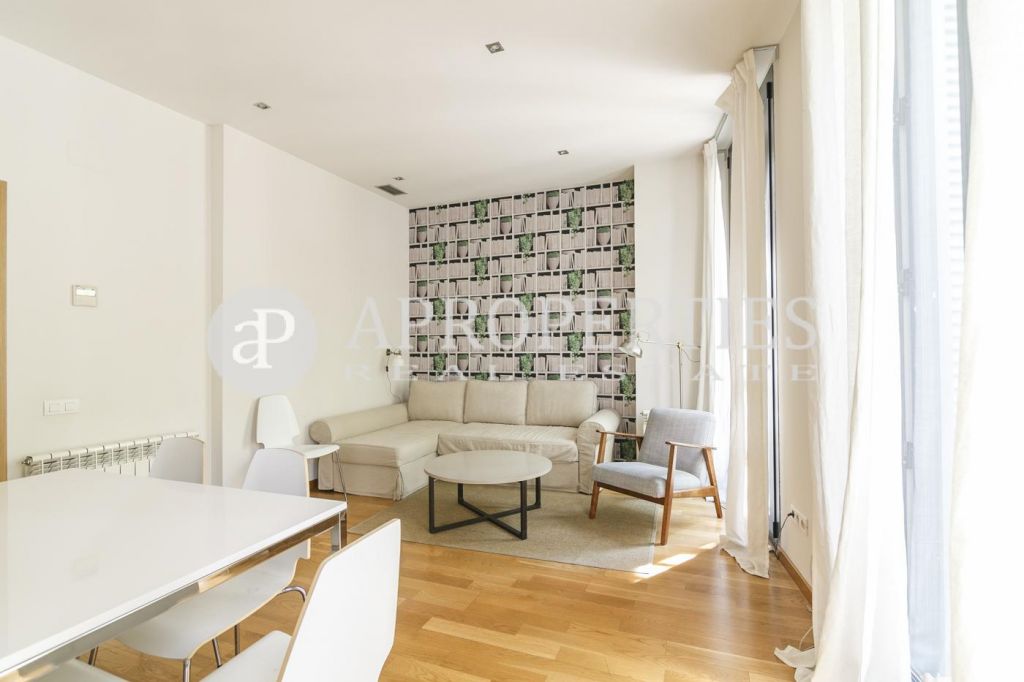 Piso amueblado de 65m² muy luminoso, perfectamente ubicado y muy bien comunicado en Paseo de Gracia junto a Avenida Diagonal. Tiene un amplio salón con vistas a Jardinets de Gracia, cocina completamente equipada, un amplio baño y dos habitaciones; una de ellas doble y otra individual, ambas con armarios y salida a un pequeño patio. La vivienda dispone de aire acondicionado por conductos y calefacción a gas. Un lugar cómodo y tranquilo para disfrutar de una de las mejores zonas de la ciudad. Estancia mínima de un año.