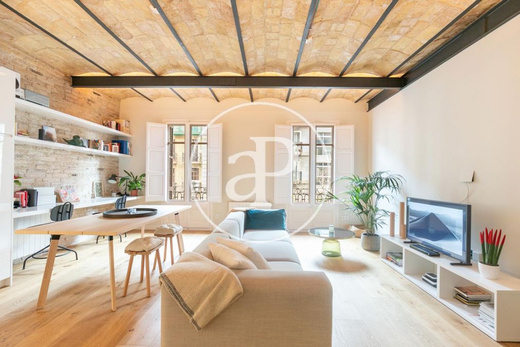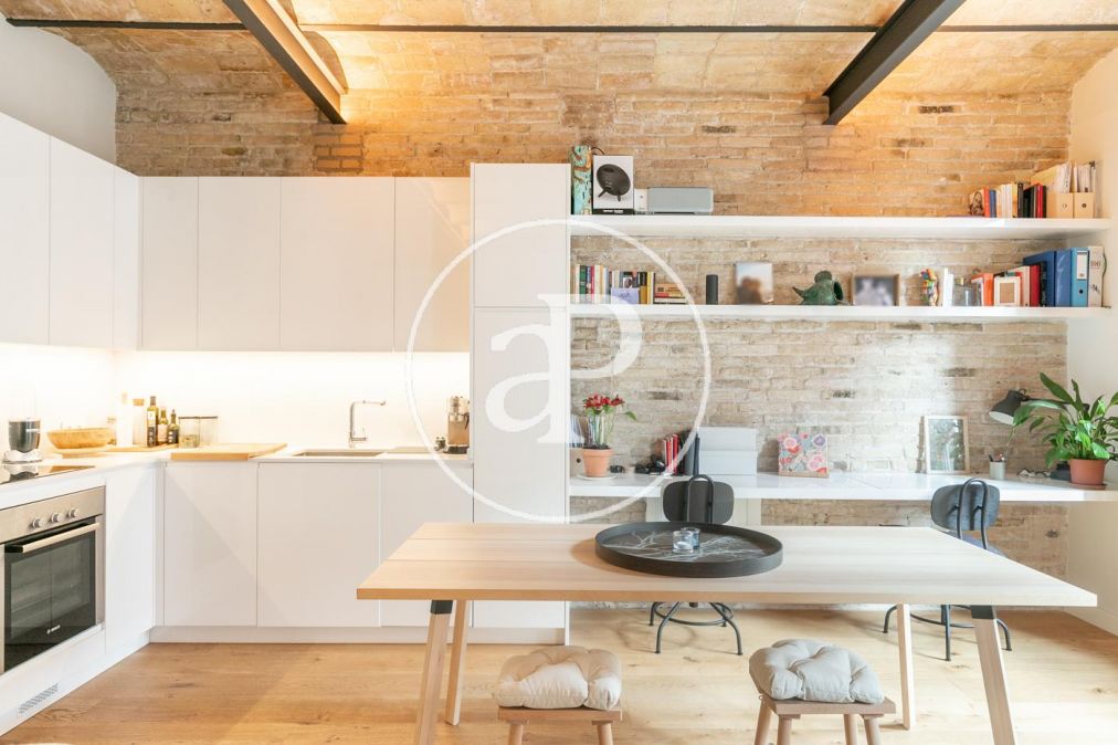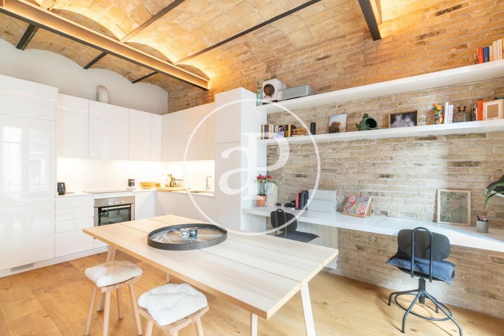 La propiedad dispone calefacción a gas, aire acondicionado. Los suelos combinan entre parquet de madera y suelo hidráulico, paredes de obra vista y techos de volta catalana que le dan ese toque tan característico de los pisos de la Eixample Barcelonesa.