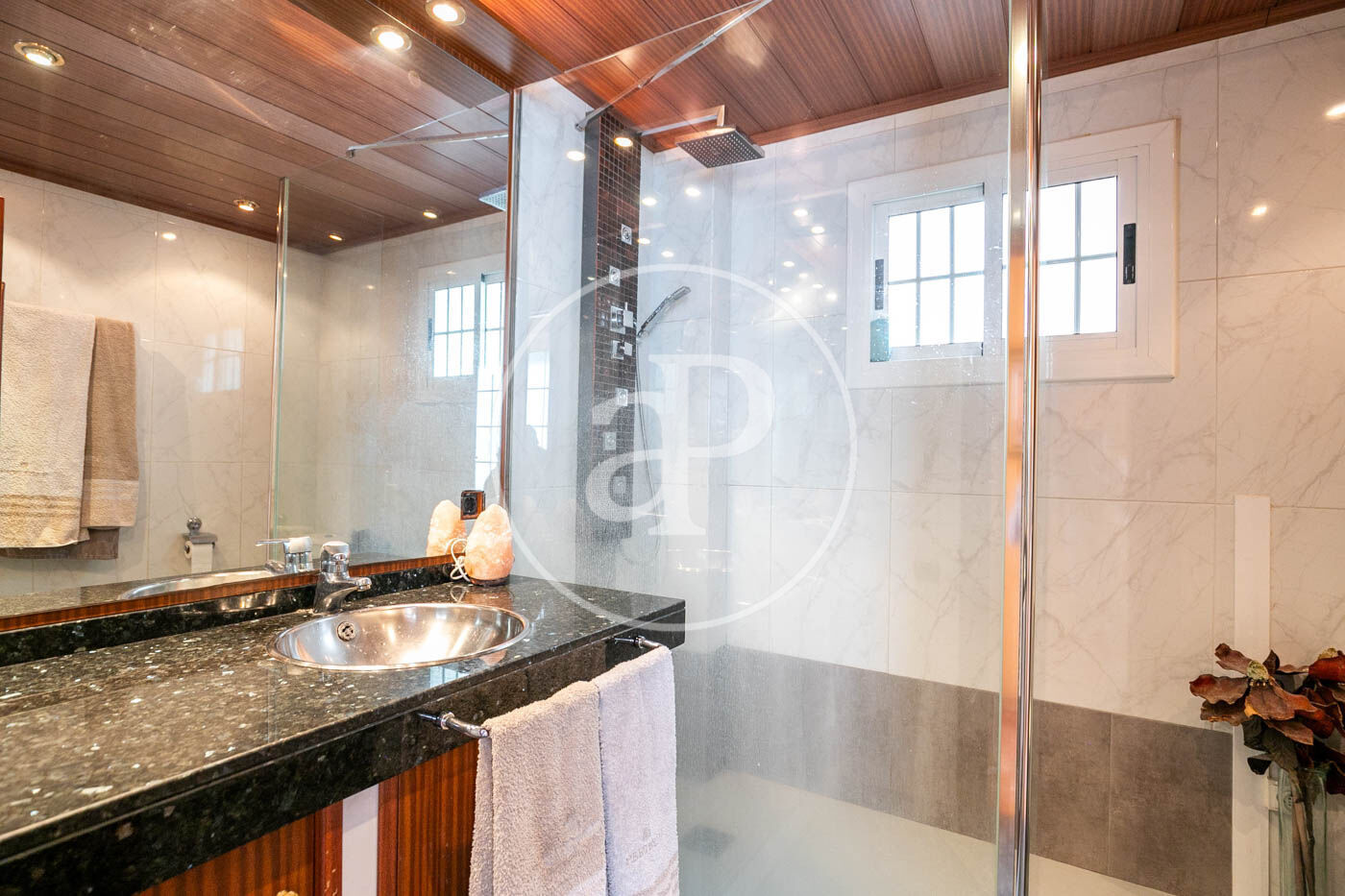 El ático consta de tres habitaciones: dos dobles y una individual, perfectas para acomodar a una familia o para ser utilizadas como espacios adicionales según tus necesidades. El baño es amplio y está equipado con una lujosa ducha de cascada, proporcionando un toque de sofisticación y confort.