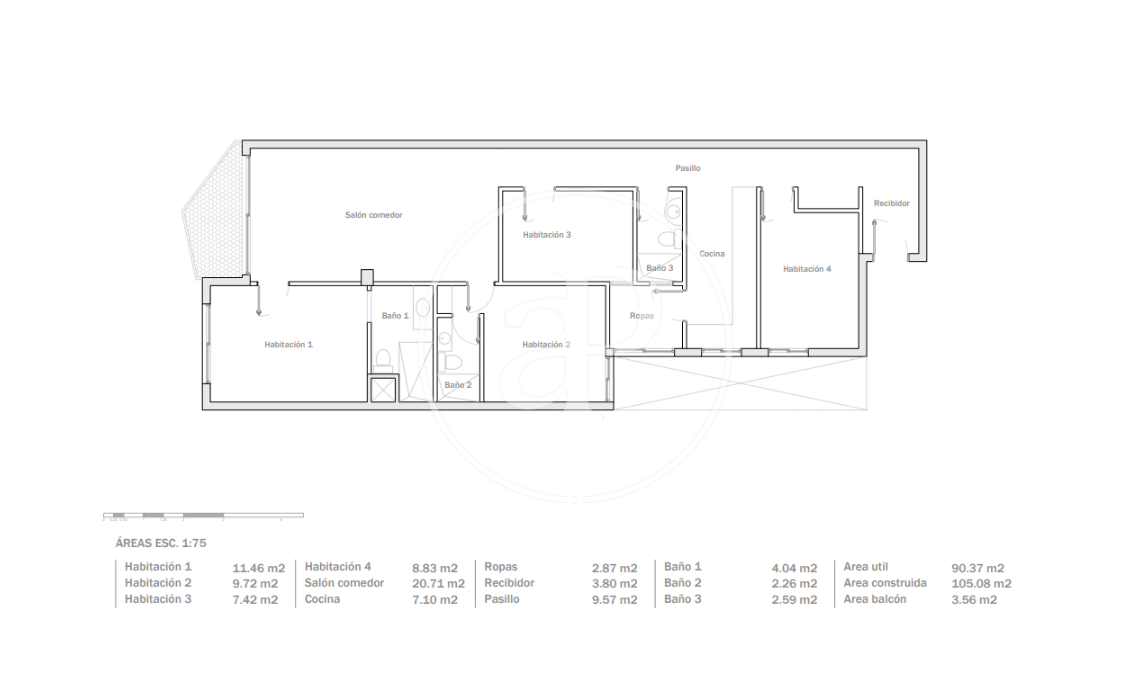La vivienda cuenta con 4 habitaciones dobles y 3 baños completos, ideal para familias numerosas o para quienes valoran el espacio y la comodidad.