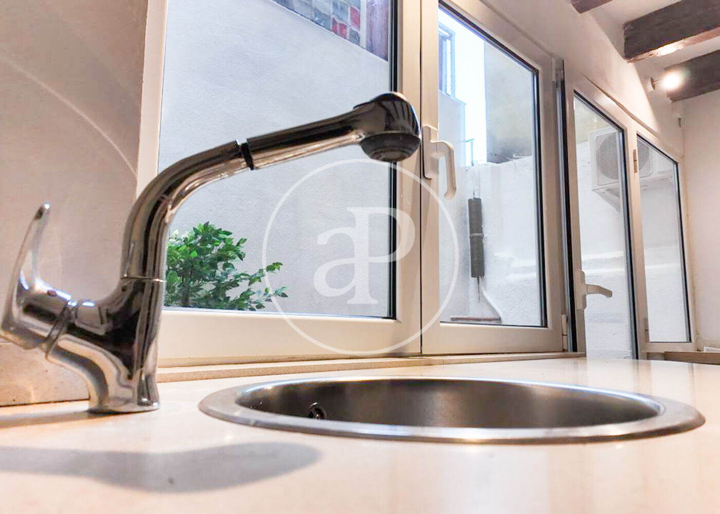 El piso cuenta con un espacio diáfano donde se encuentran el dormitorio y el comedor. También cuenta con una gran cocina con mucho espacio de trabajo y una sala polivalente con luz natural que vierte un patio privativo de 14 metros cuadrados.