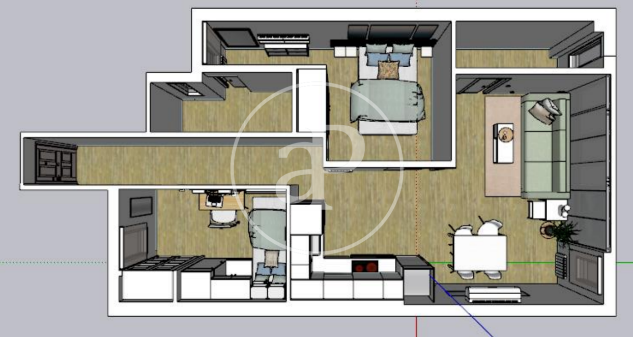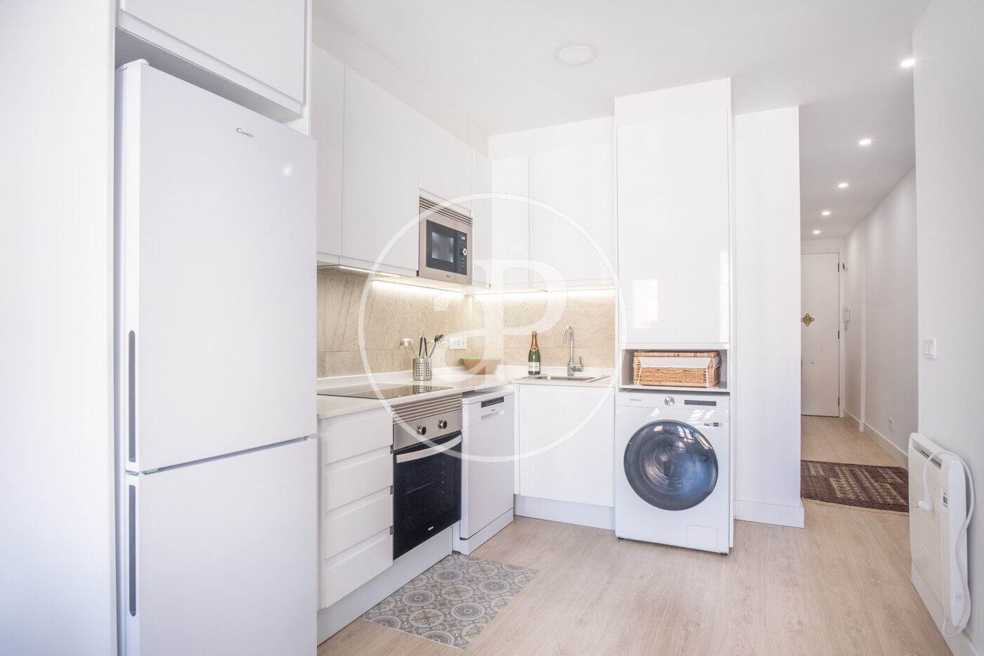 Sus 56 m2 construidos se distribuyen en un amplio y luminoso salón comedor con cocina office totalmente equipada, que gracias a su orientación goza de mucha luminosidad, 1 suite con vestidor y baño completo, 1 habitación semidoble y otro baño completo al lado del salón-comedor.