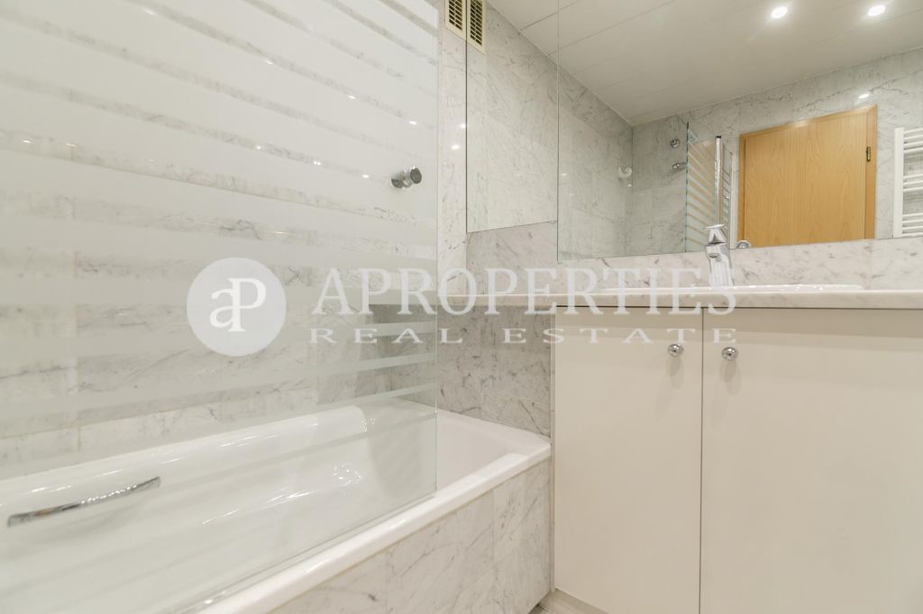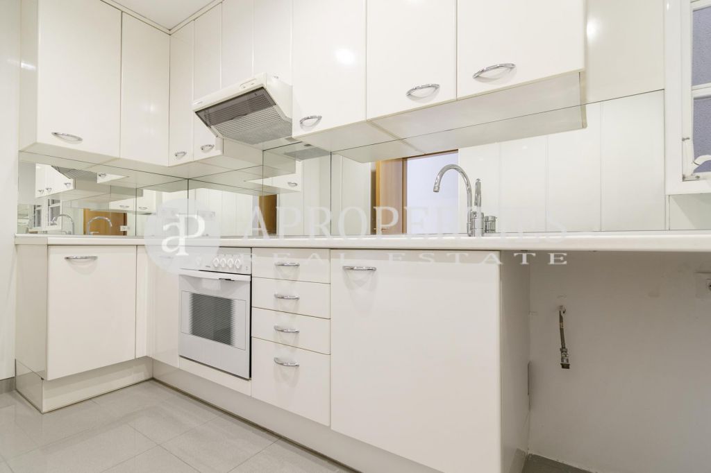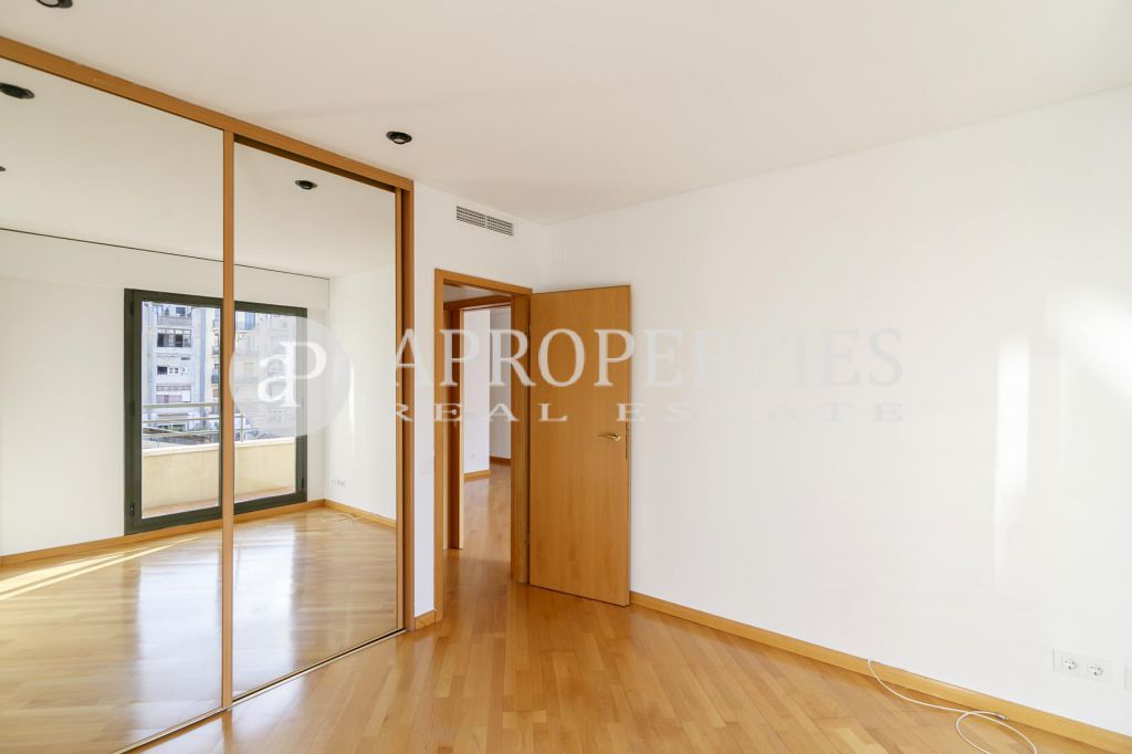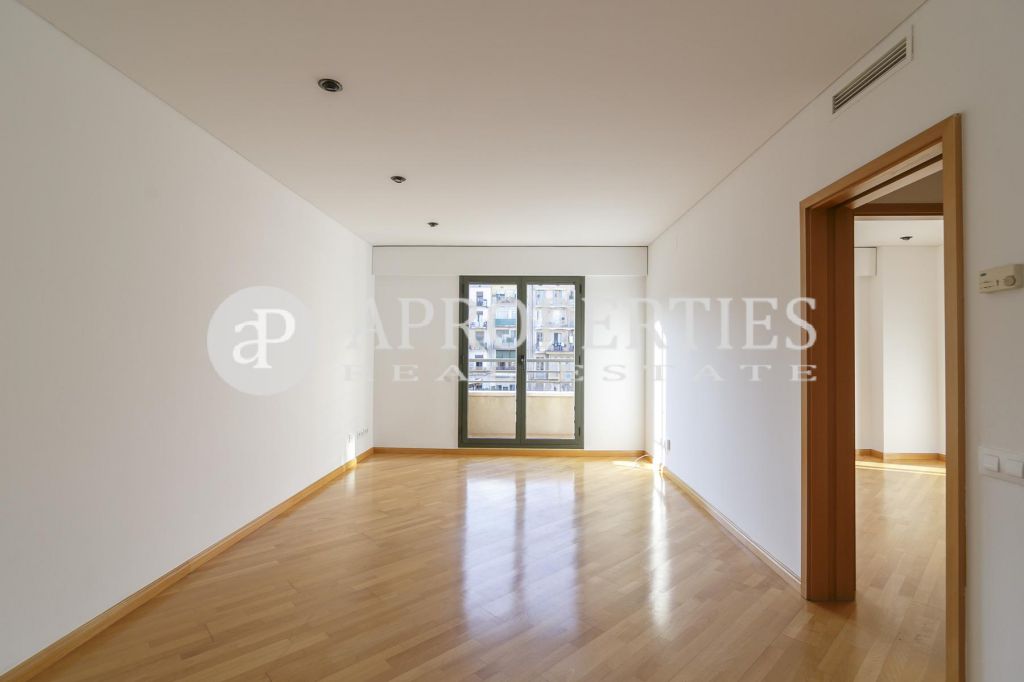 Piso de 75m² reformado, muy silencioso y soleado en Gran Vía de les Corts Catalanes, a dos minutos de Universitat y a cinco minutos de Plaza Catalunya muy bien ubicado y de fácil acceso a las entradas y salidas a la ciudad. Consta de un luminoso salón-comedor con terracita de 9m² que da a patio de manzana típico de l’Eixample; una cocina reformada sin electrodomésticos; dos dormitorios dobles con armarios empotrados, uno con salida a la terraza que comparte con el salón y otro que da a patio de luces interior y un amplio baño completo.. El piso dispone de aire acondicionado caliente/frio, armarios empotrados y un trastero de unos 7m² aproximadamente. Tiene una plaza de parking grande (coche y moto). La vivienda se ha reformado completamente y está para entrar a vivir. Se aceptan estudiantes de Máster e IESE y pequeñas mascotas.