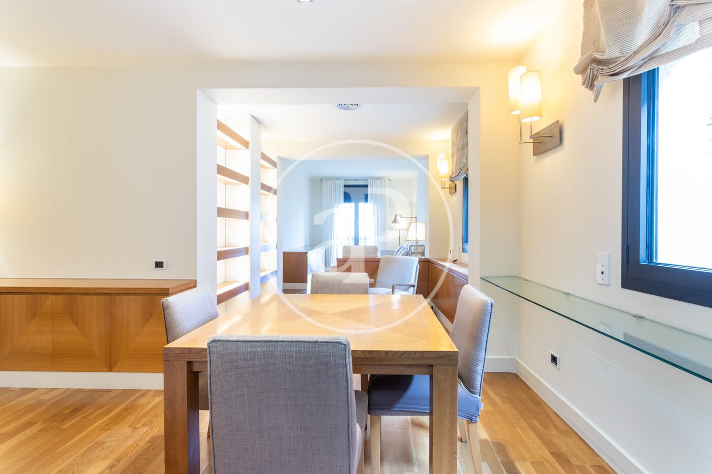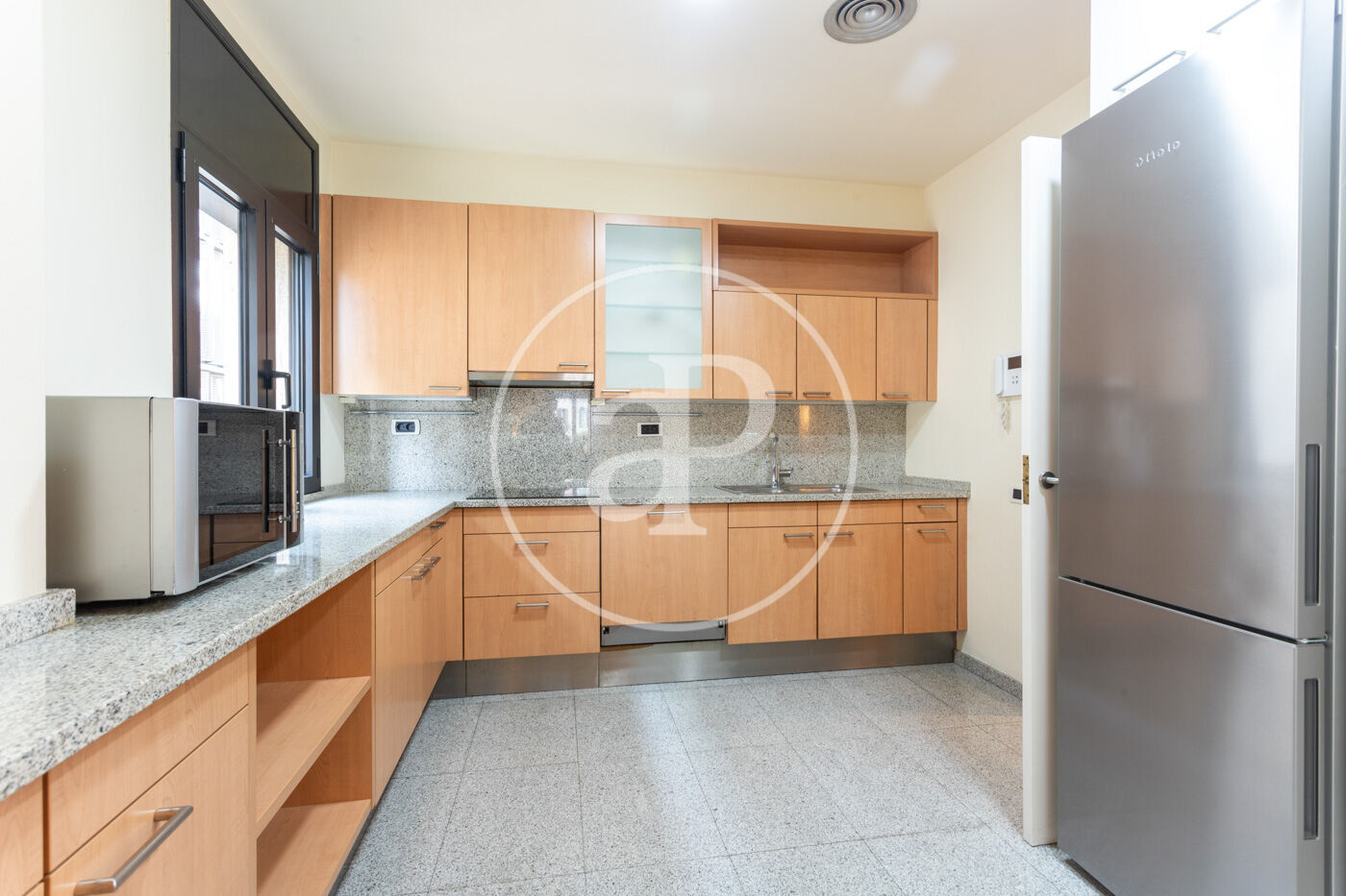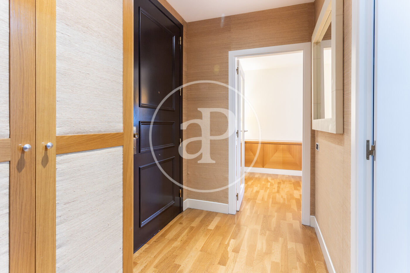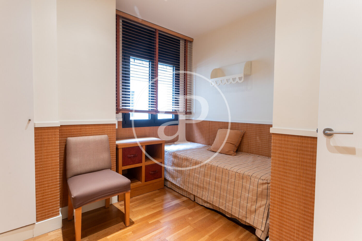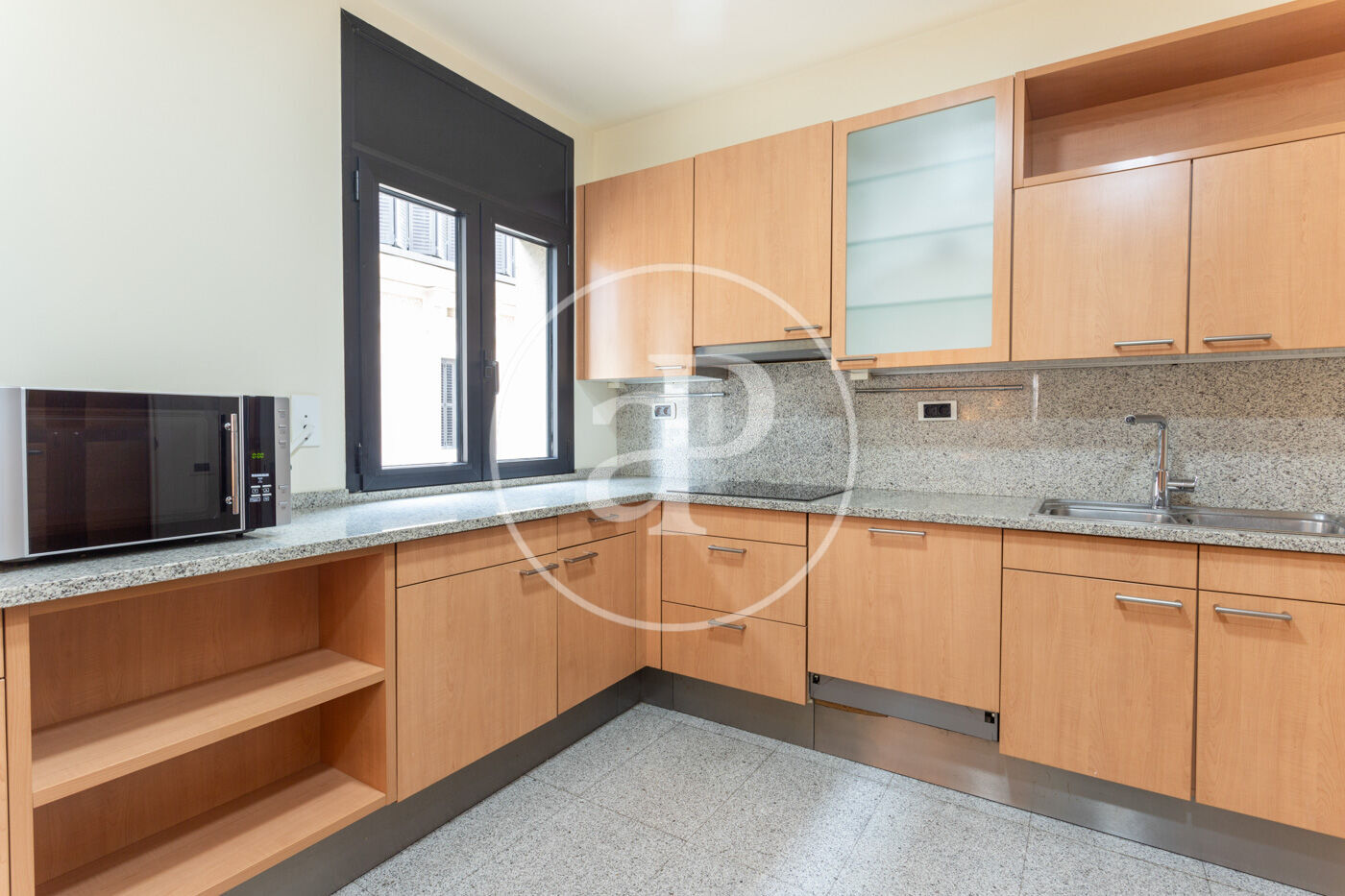 Este piso luminoso tiene 90 m², totalmente amueblado y equipado. Armarios empotrados, zona de aguas, balconcito a paseo de gracia y todo exterior. Aire acondicionado y calefacción por conductos, por todo el piso.