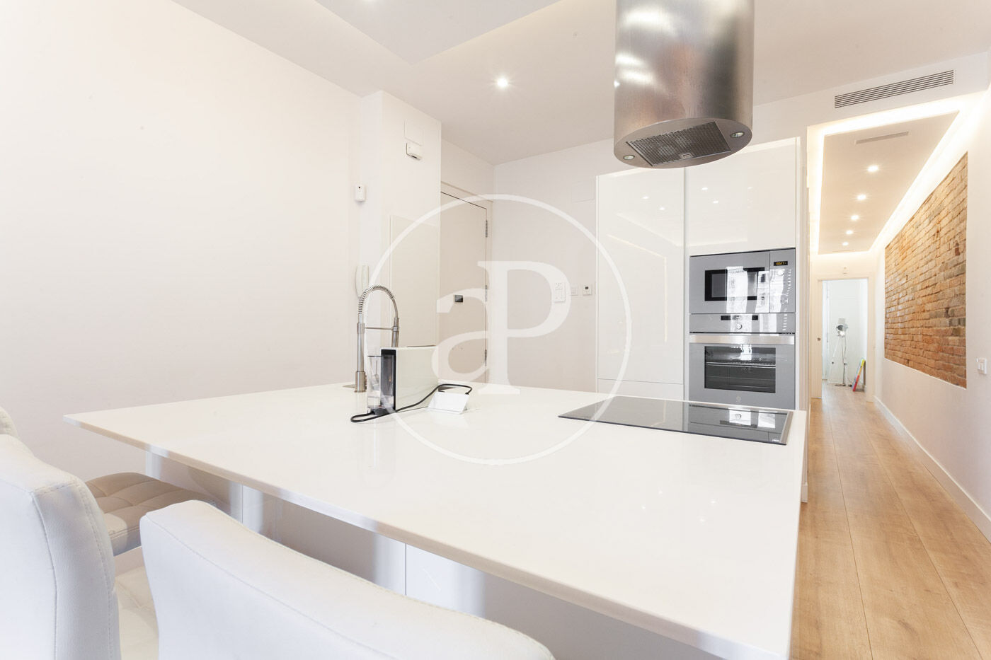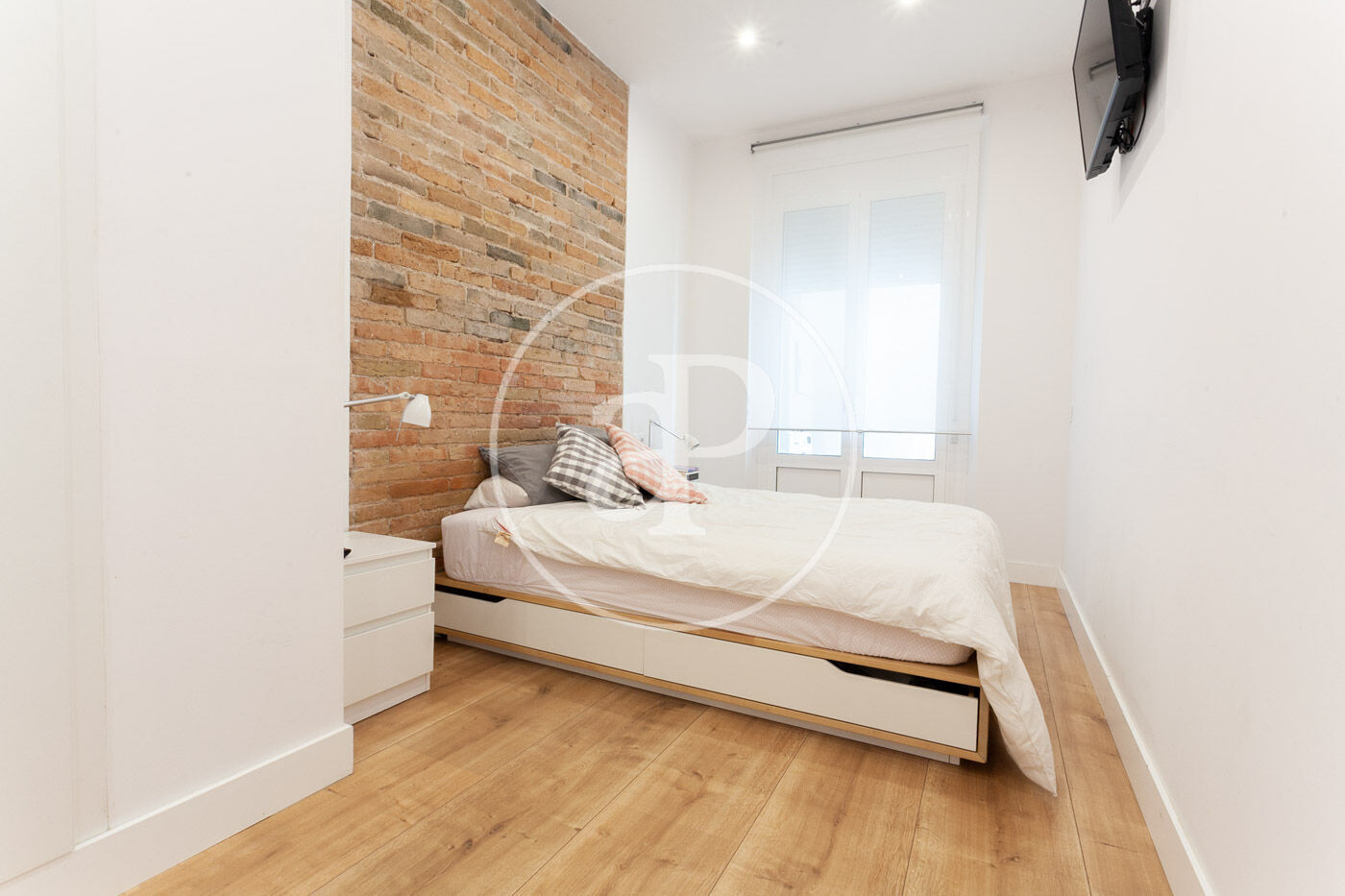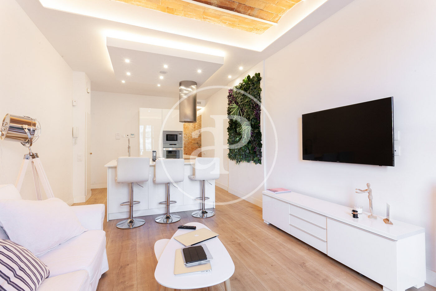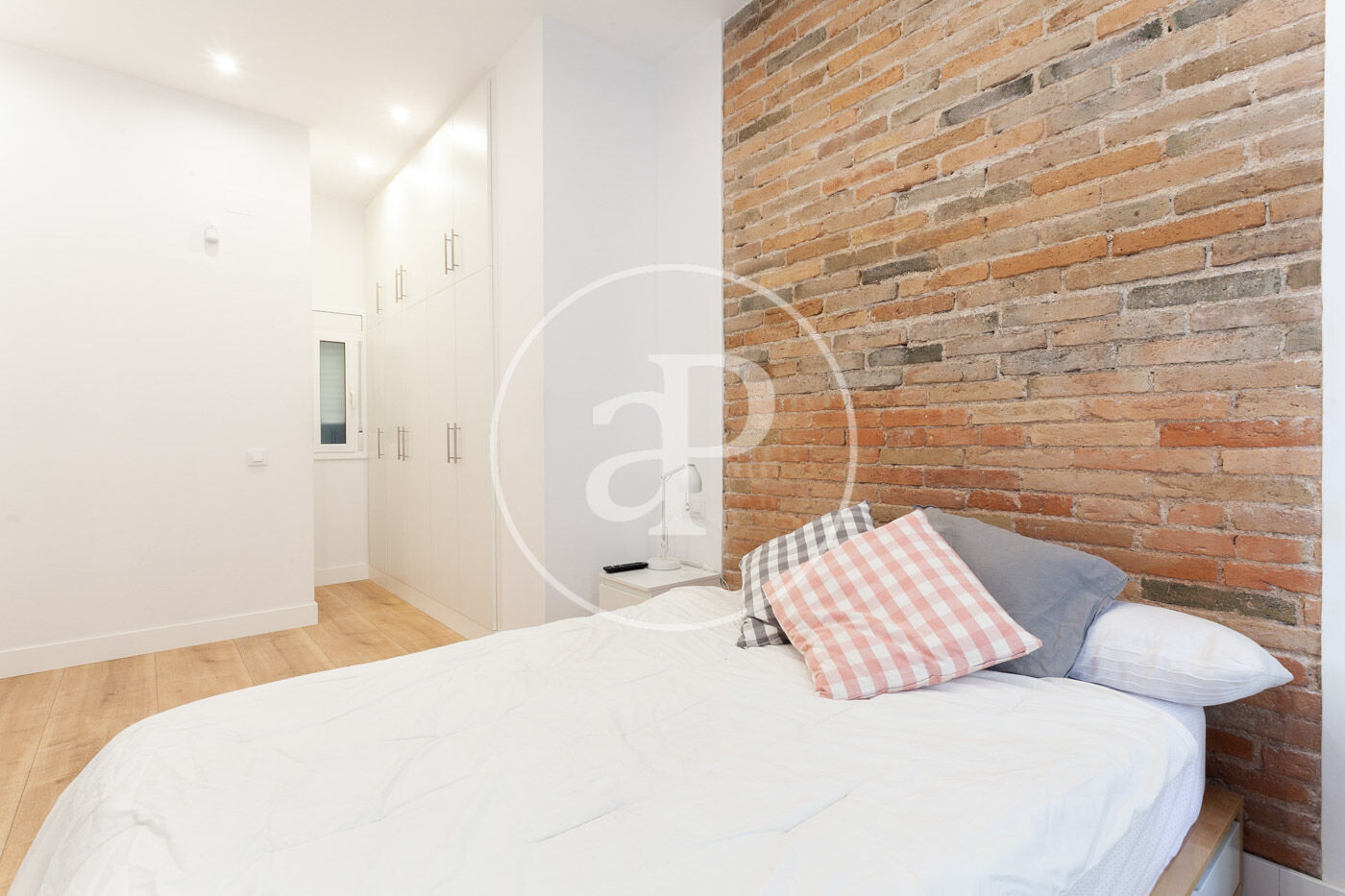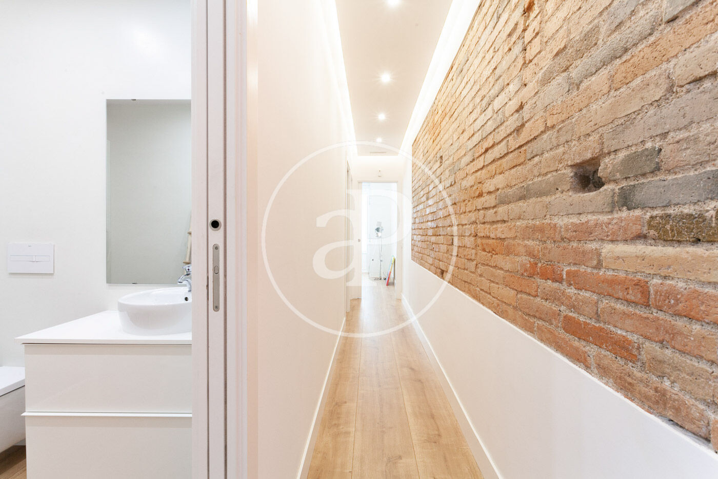 Precioso piso amueblado y remodelado con mucho gusto, recuperando la volta catalana y la pared de ladrillo tan típico de los pisos de la Eixample. Se encuentra en la Ronda de Sant Antoni, en el centro de Barcelona.