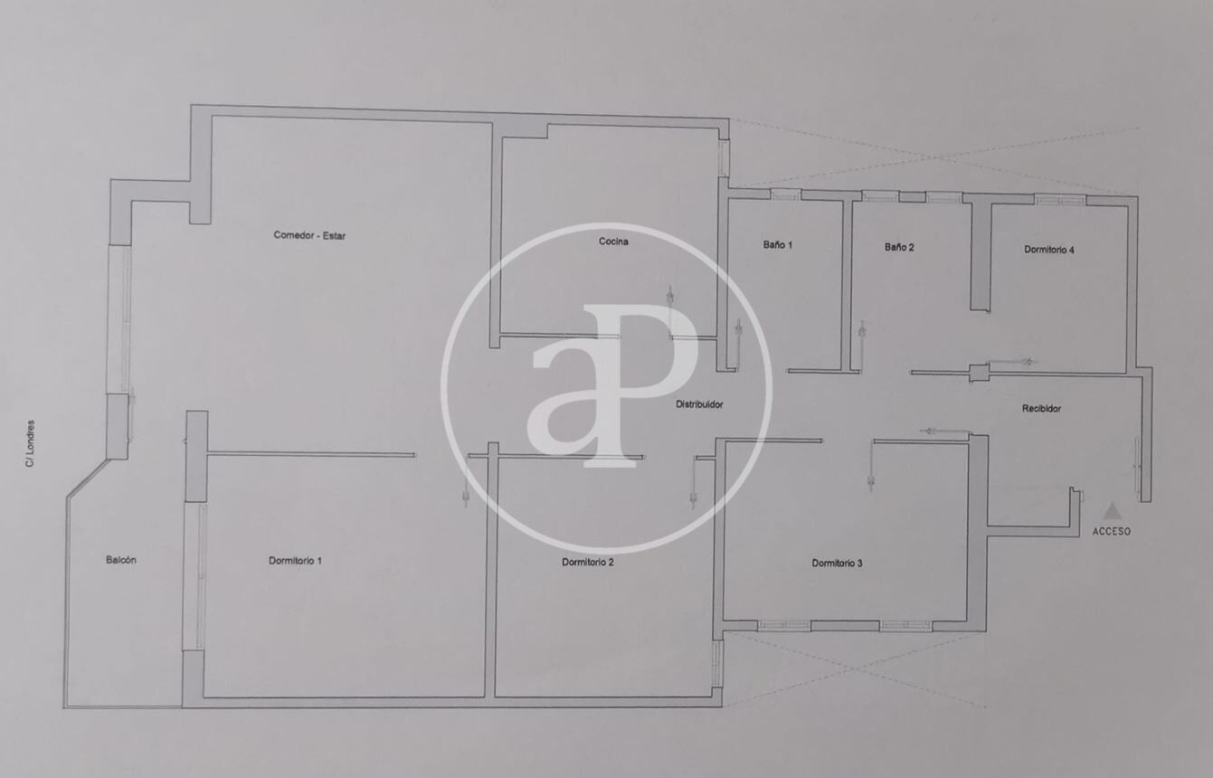 Piso de 124m2 muy soleado y silencioso cercano a Avenida Sarria. Finca con orientación este y con dos ascensores y conserje todo el día.