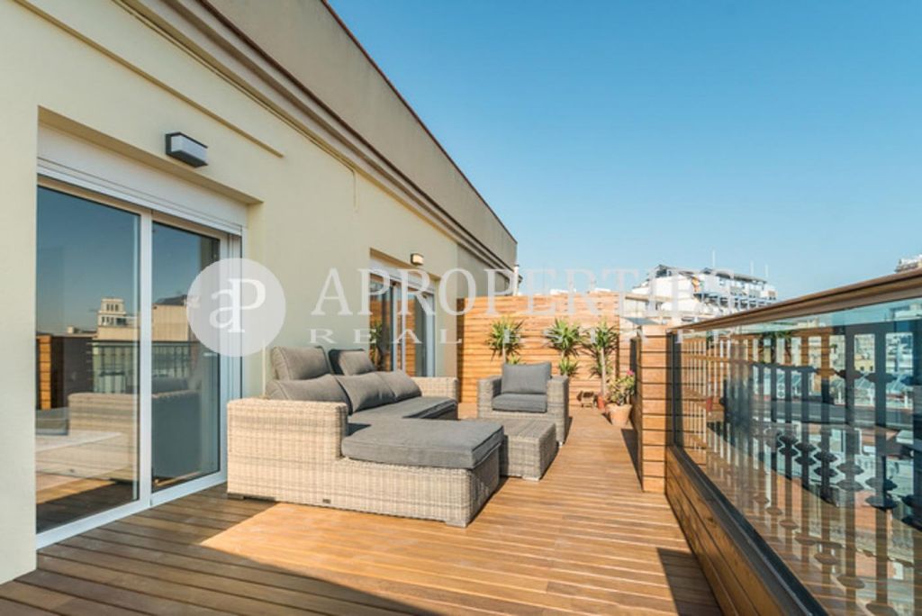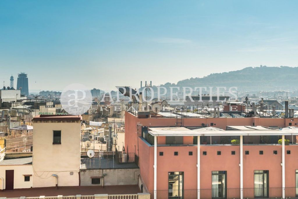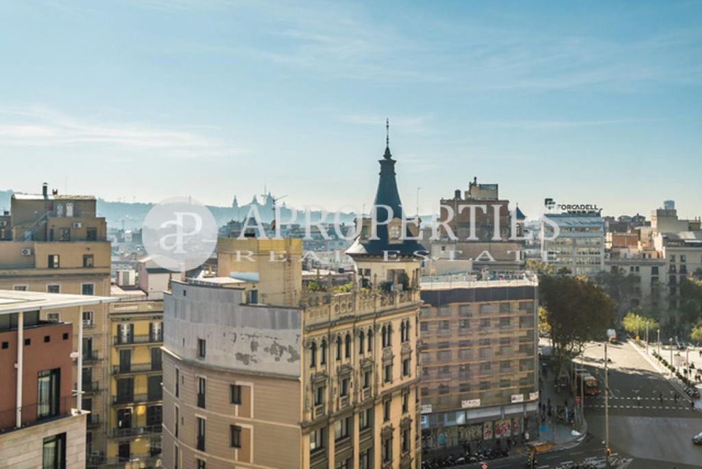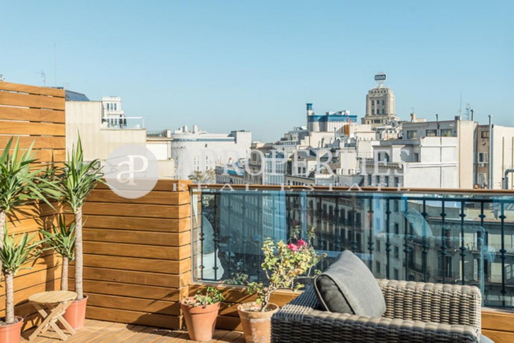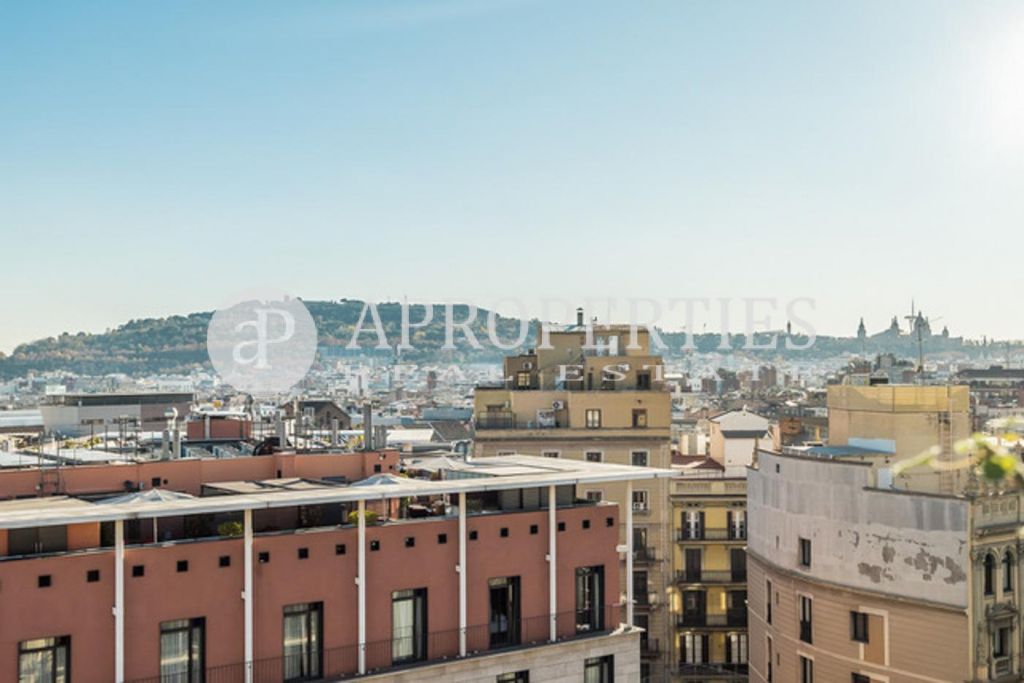 La vivienda tiene de una superficie de 50m2 y una terraza de aproximadamente 25m2 desde la que se divisa Montjuic, el mar, y las fuentes de Plaza Cataluña.