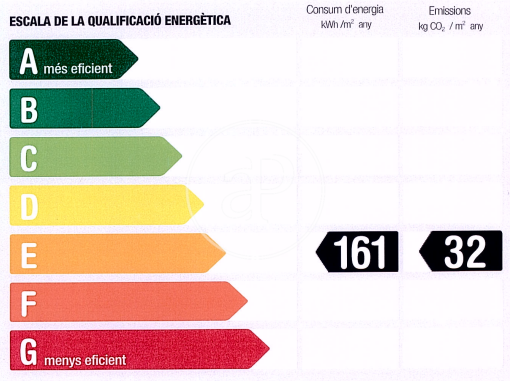 Más eficiente Menos eficie Calificación energética Consumo energía Kw h/m² año Emisiones Co/m² año 161.00 32.00