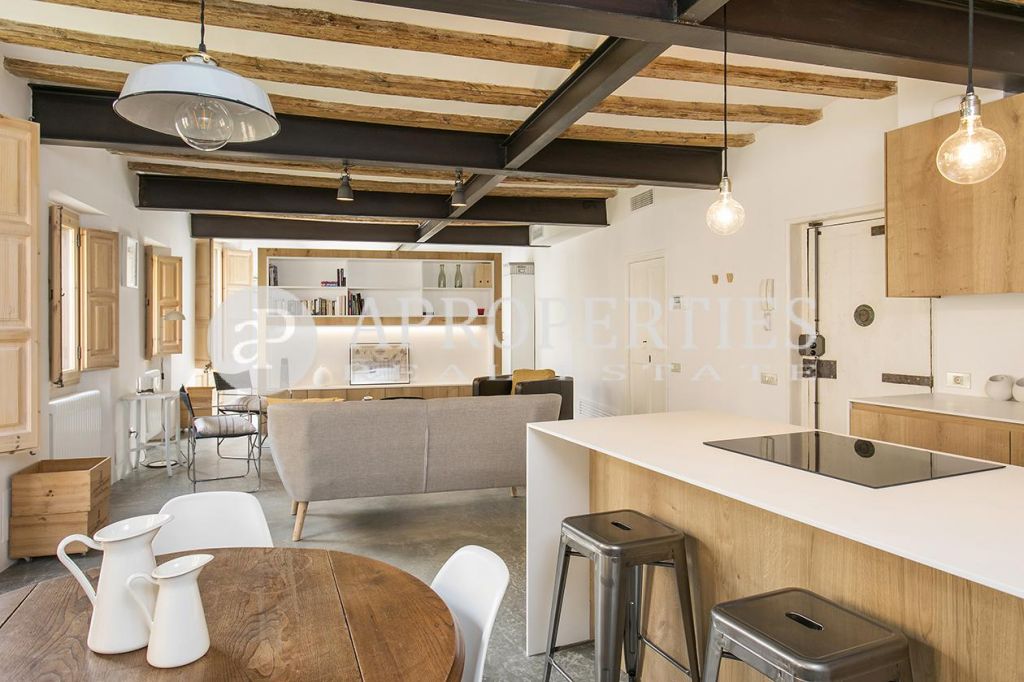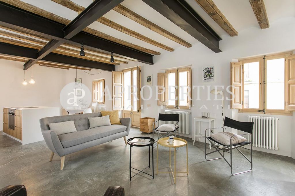 Ubicado en el barrio del Born, muy cerca del parque de la Ciutadella, el mercado del Born y la estación de Francia, rodeado de comercios, restaurantes, museos, y muy bien conectado con el transporte público, encontramos este encantador piso totalmente amueblado y equipado a estrenar. Se trata de un piso de 67m² tipo loft muy luminoso por ser esquinero con balcón, que mezcla detalles clásicos y modernos. La zona de día consta de un luminoso salón-comedor con cocina abierta al salón totalmente equipada incluyendo menaje y lavadora/secadora. La zona de noche dispone de una habitación doble y un baño. Cuenta con calefacción a gas y aire acondicionado por conductos. La finca no tiene ascensor.