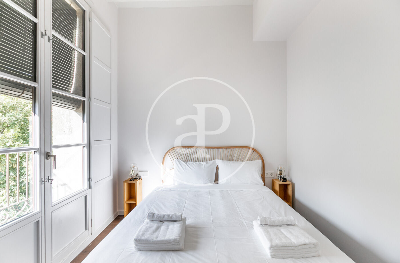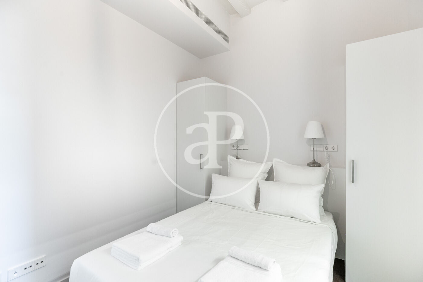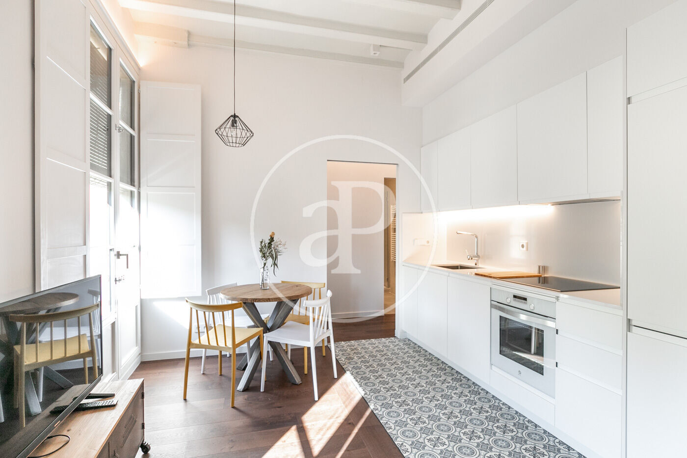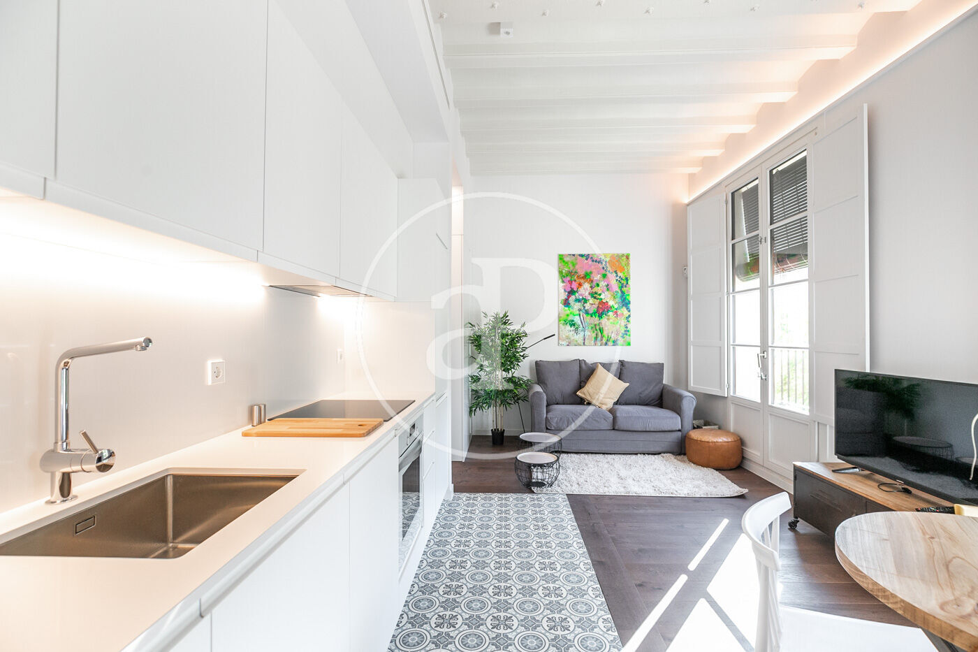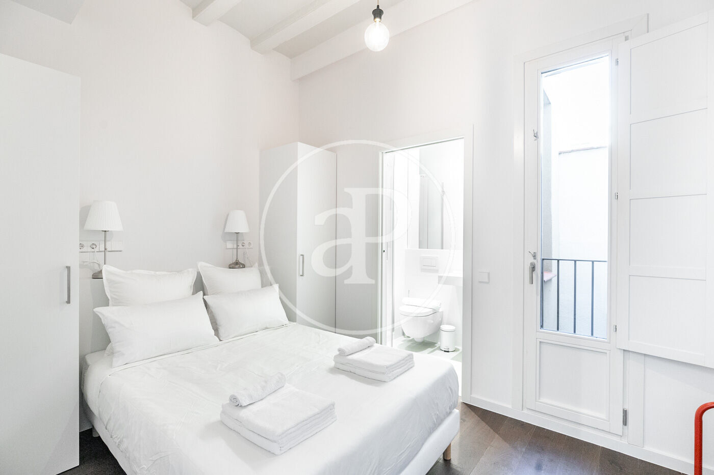 Ubicado en el barrio del Born, en un enclave estratégico del cosmopolita y atractivo barrio, muy cerca de la Plaza Sant Agusti Vell, de la playa, del parque de la Ciutadella y la estación de Francia, rodeado de comercios, restaurantes, museos, y muy bien conectado con el transporte público. Encontramos este fabuloso piso recientemente reformado, totalmente amueblado y equipado.