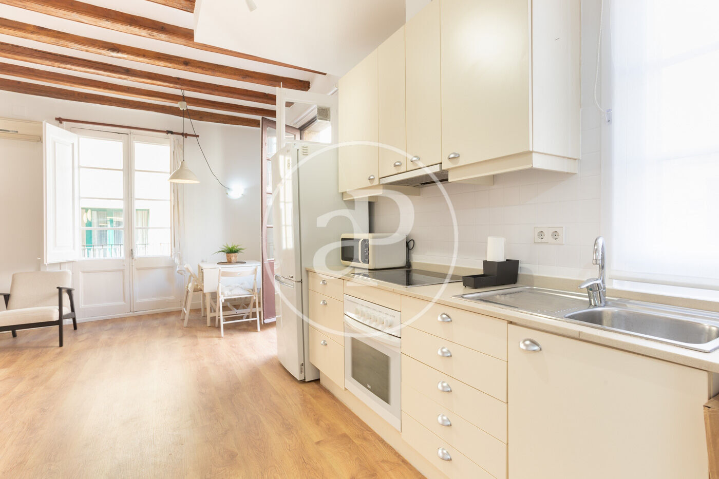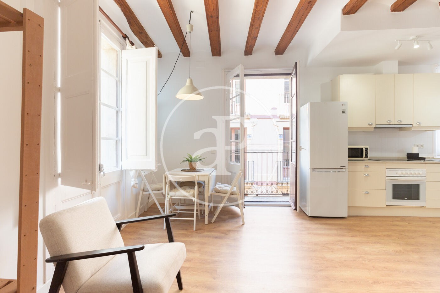 Piso amueblado en calle Pescatería, en el centro del Born. Se encuentra muy cerca del paseo del Born y la Estación de Francia, y de multitud de restaurantes con preciosas calles al más estilo histórico de Barcelona.