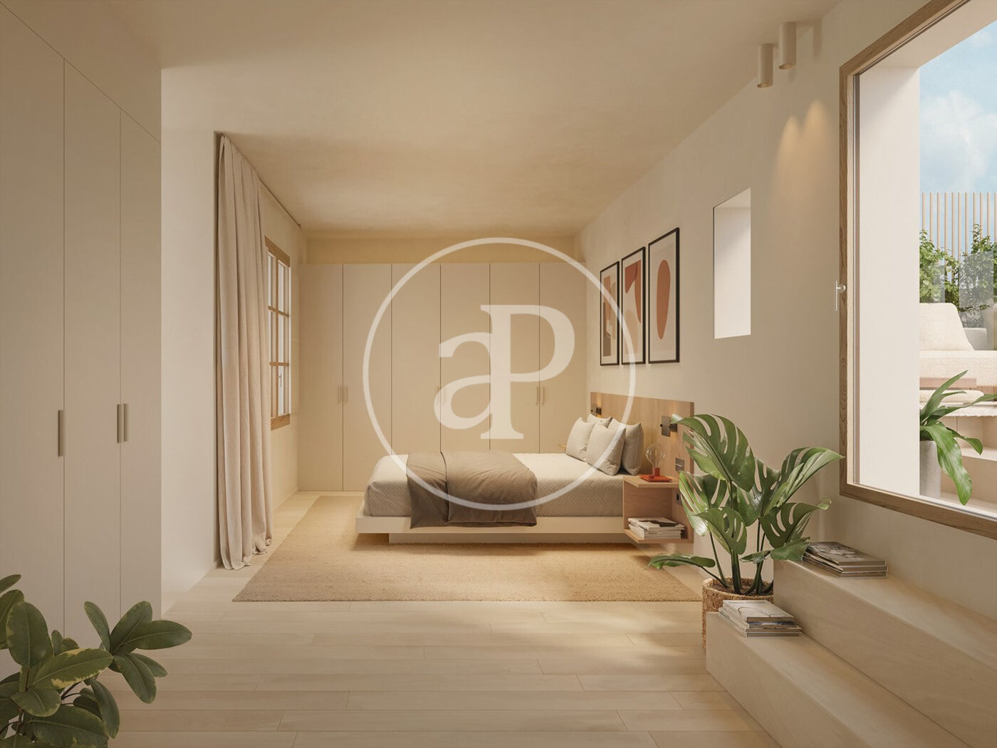 La zona de día se compone de un salón comedor diáfano, con acabados en tonos neutros y materiales de primera calidad, que se abre a una terraza de 17m2. Este espacio exterior es perfecto para disfrutar del clima mediterráneo, crear una zona de relax o incluso un comedor al aire libre. Además, la propiedad cuenta con una segunda terraza de 27m, un oasis privado con múltiples posibilidades, desde una zona chill-out hasta un jardín urbano.