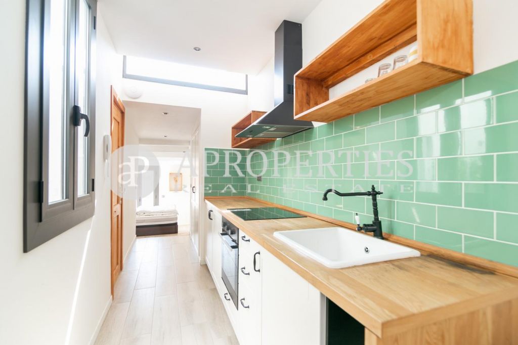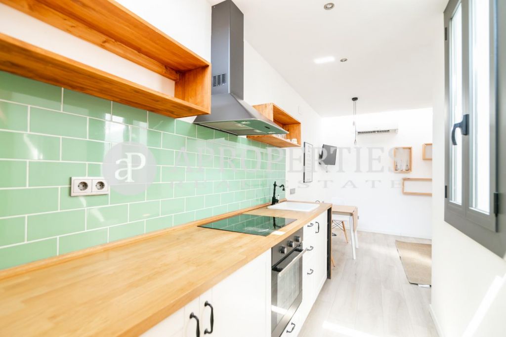 Ubicado en el Barrio del Born, rodeado de comercios, restaurantes y museos, muy cerca de la playa y muy bien comunicado con el transporte público, encontramos este ático totalmente amueblado y equipado de 40m² con terraza.