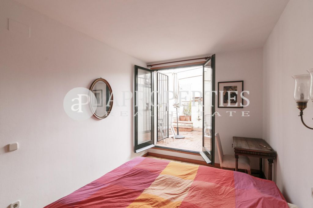 En pleno barrio de la Ribera, en el Born, a pocos metros de la Basílica de Santa María del Mar, encontramos esta maravillosa finca histórica, que fue totalmente rehabilitada en el año 1999. Se trata de un ático de 101m2 más una terraza privada a nivel de 43m2 aproximadamente. La vivienda tiene mucho potencial debido a su ubicación y a su orientación, ya que dispone de mucha luz natural durante todo el día. Consta de un amplio salón-comedor con preciosas vistas a la plaza, cocina totalmente equipada de estilo americano, un dormitorio doble con armario empotrado y salida a la terraza de uso privativo, otra habitación doble en suite con vistas a la plaza Jacinto Raventós y un amplio baño con bañera. Todas las estancias son exteriores. Finca con doble puerta de seguridad y ascensor para seis personas. Inmejorable ubicación de los puntos más emblemáticos de la ciudad, tales como Iglesia de Santa María del Mar, rodeado de muy buenos restaurantes y espacios culturales, a tan solo 10 minutos de la playa de Barcelona y de Vía Layetana.