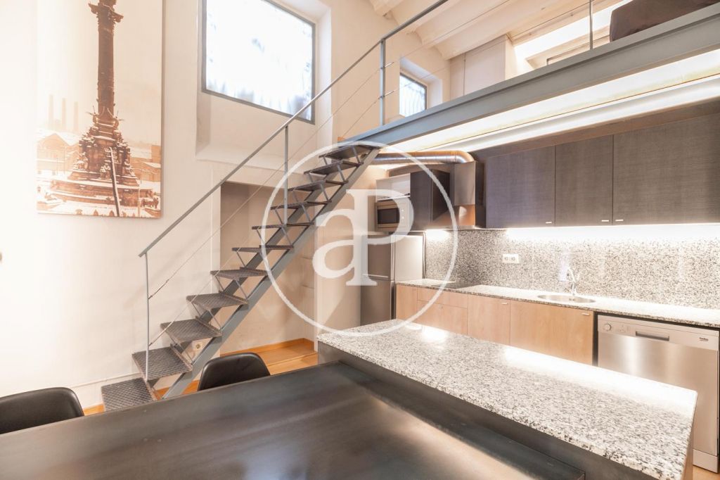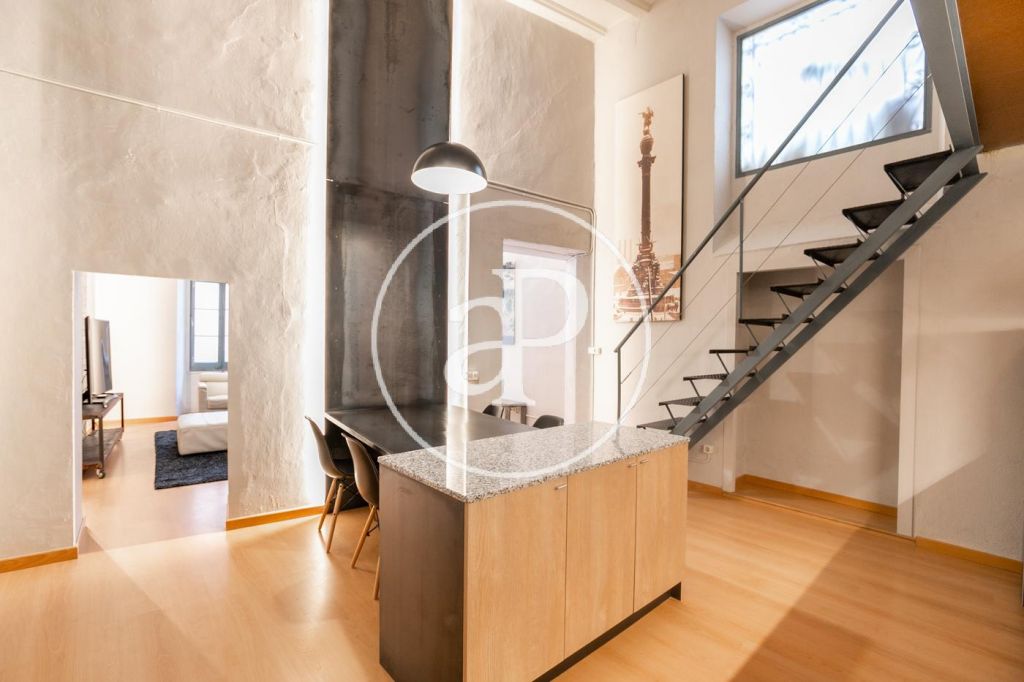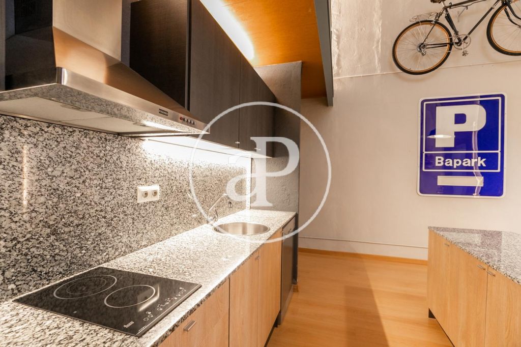 Ubicado en el barrio del Born, muy cerca del Puerto de Barcelona, Soho House, el Arco del Triunfo, rodeado de comercios, restaurantes, museos, y muy bien conectado con el transporte público y los accesos a la Ciudad. Ubicado en una calle peatonal encontramos este piso tipo loft amueblado a estrenar de 70m². La propiedad tiene un auténtico estilo neoyorkino, conservando detalles de la estructura original de la finca, como techos altos y abovedados y vigas de madera.