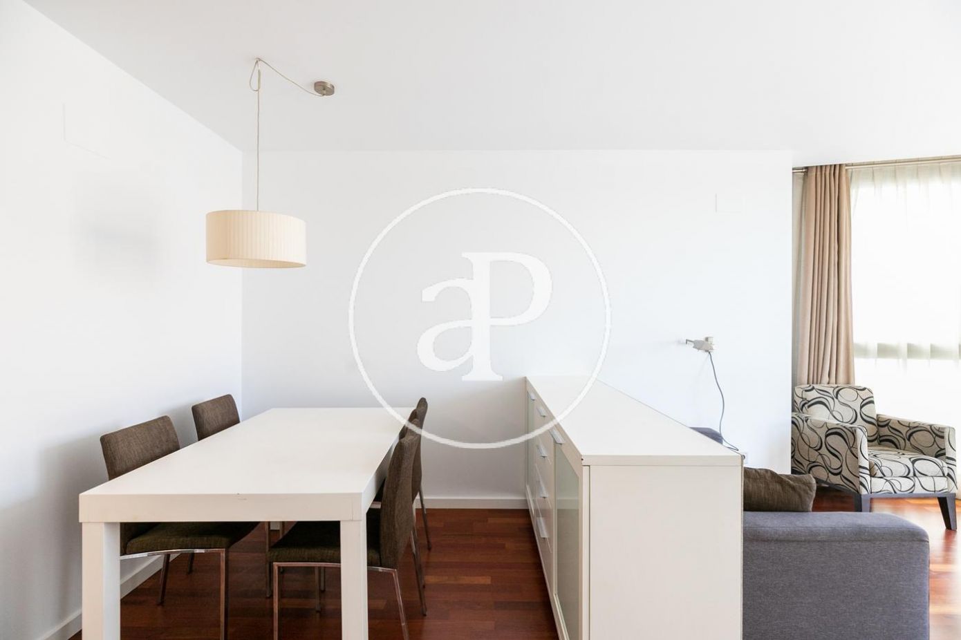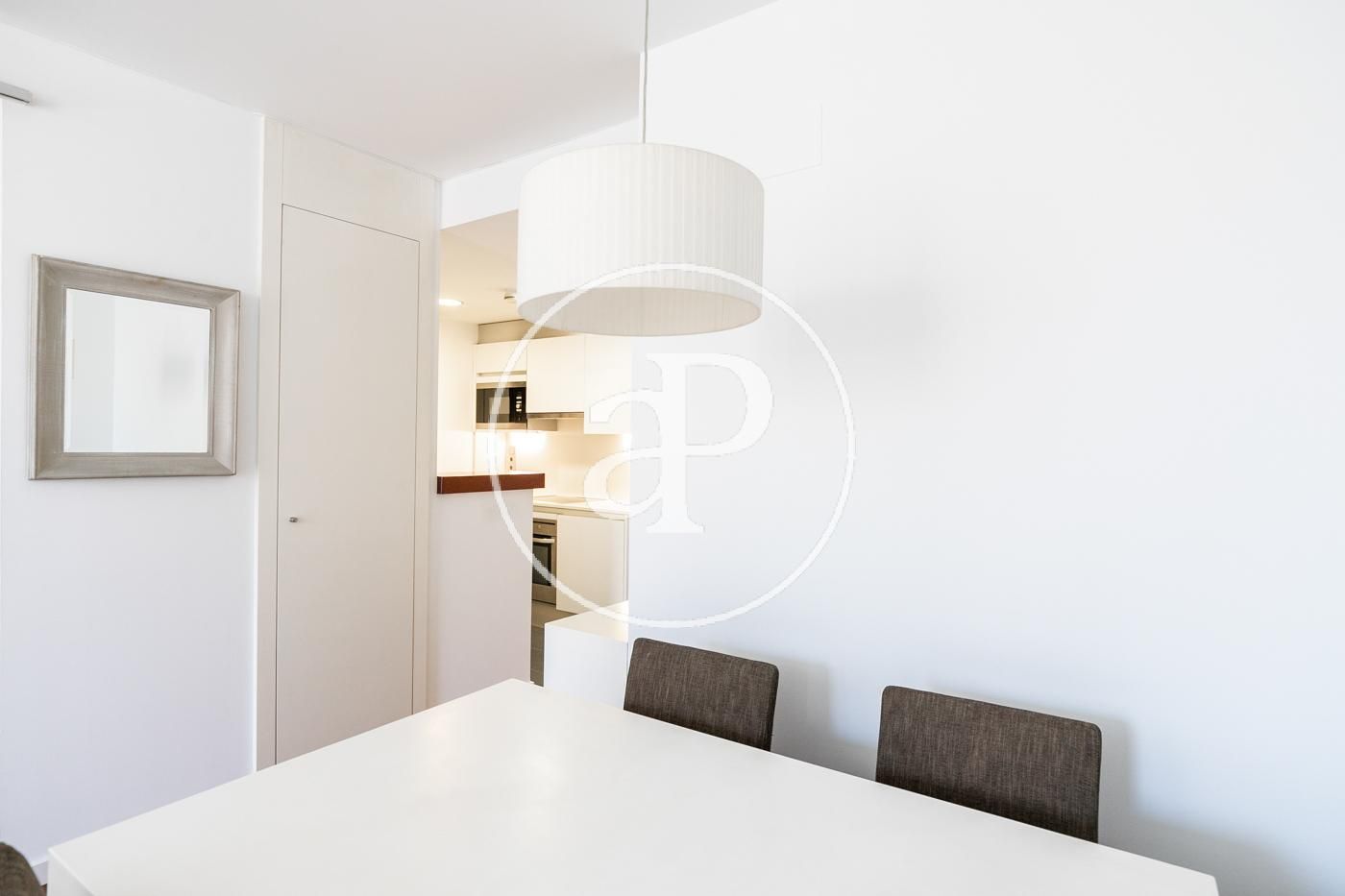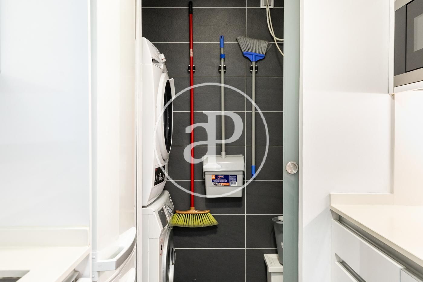 La zona de día consta de un luminoso salón-comedor, cocina americana abierta al salón totalmente equipada, incluyendo menaje y zona de aguas (lavadora & secadora).
