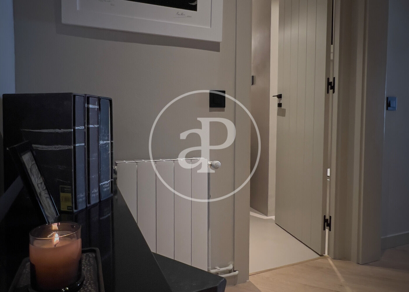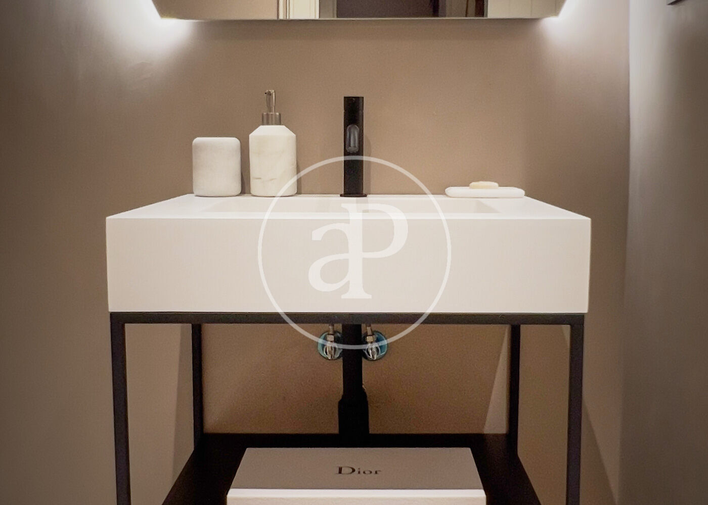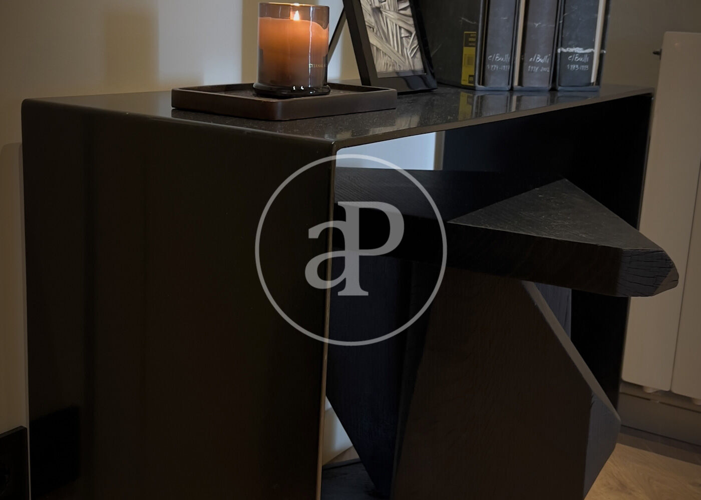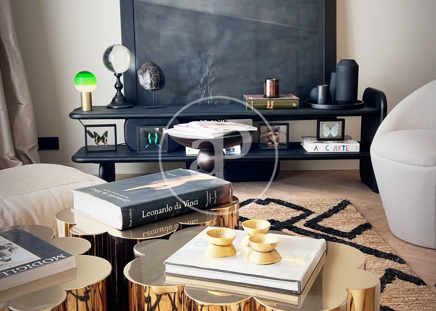 Todos los detalles de este piso han sido perfectamente pensados; el mobiliario, los detalles, la iluminación, la comodidad y el diseño .... nada ha sido pasado por alto. Los suelos combinan el parket de espiga con el cemento pulido y los cerramientos garantizan la máxima tranquilidad y eficiencia energética