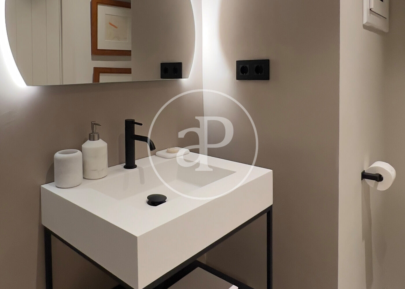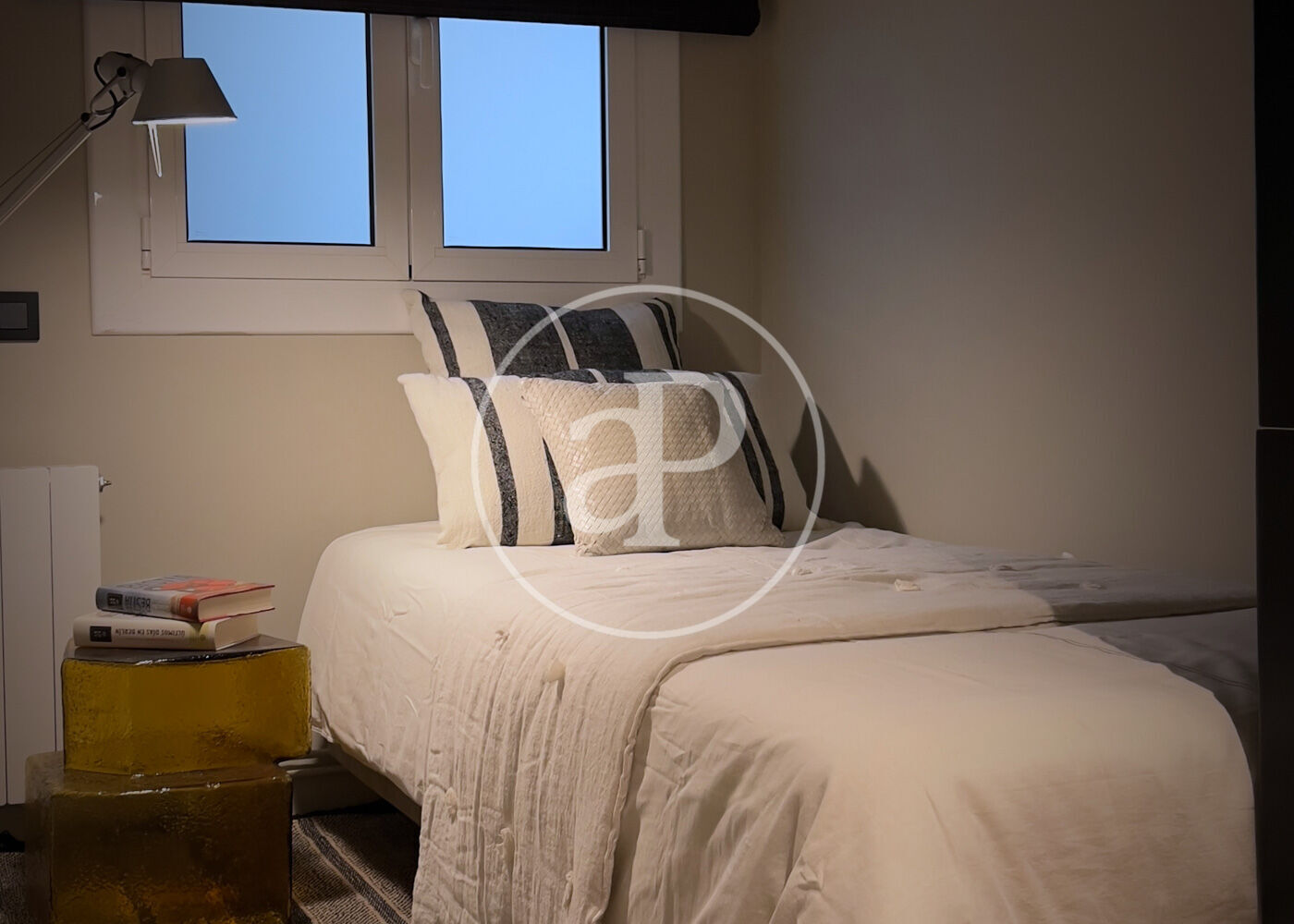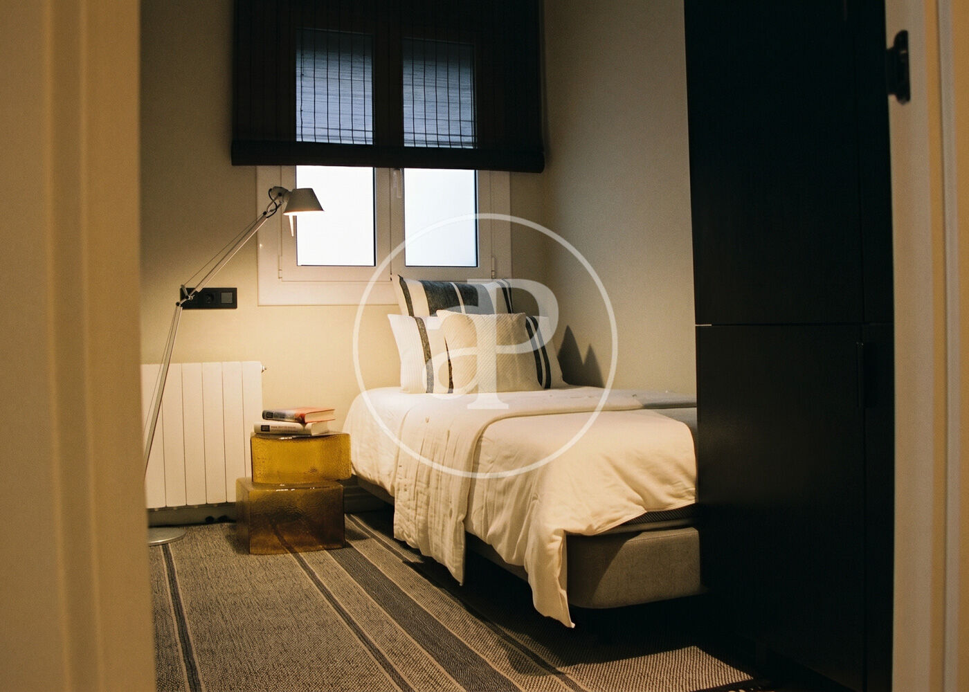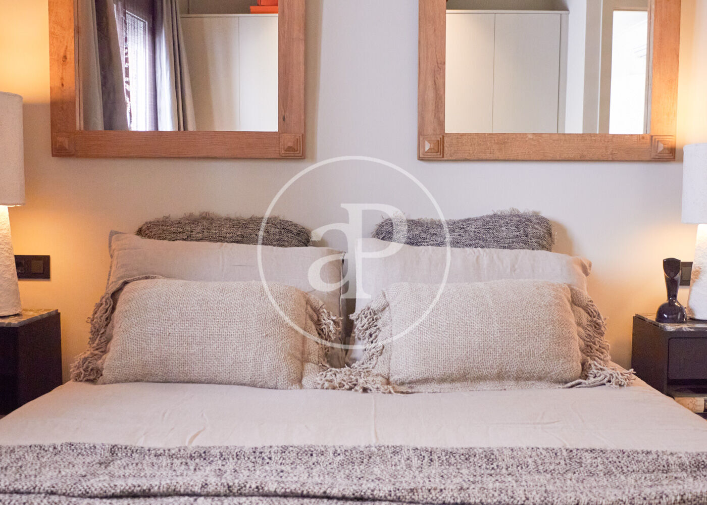 Todos los detalles de este piso han sido perfectamente pensados; el mobiliario, los detalles, la iluminación, la comodidad y el diseño .... nada ha sido pasado por alto. Los suelos combinan el parket de espiga con el cemento pulido y los cerramientos garantizan la máxima tranquilidad y eficiencia energética