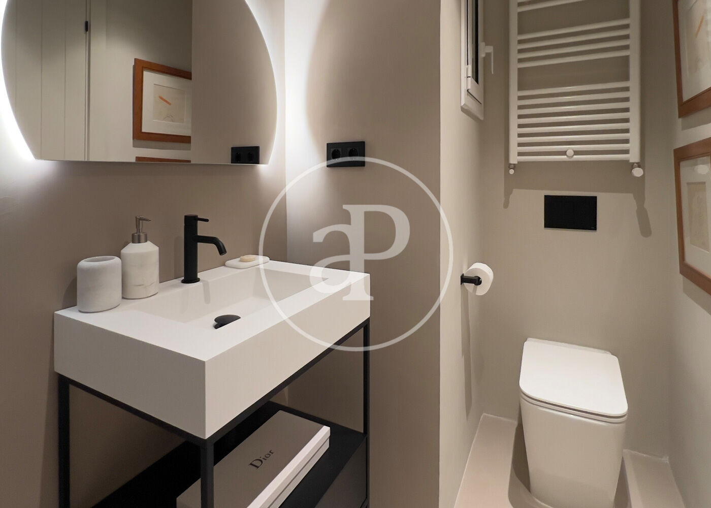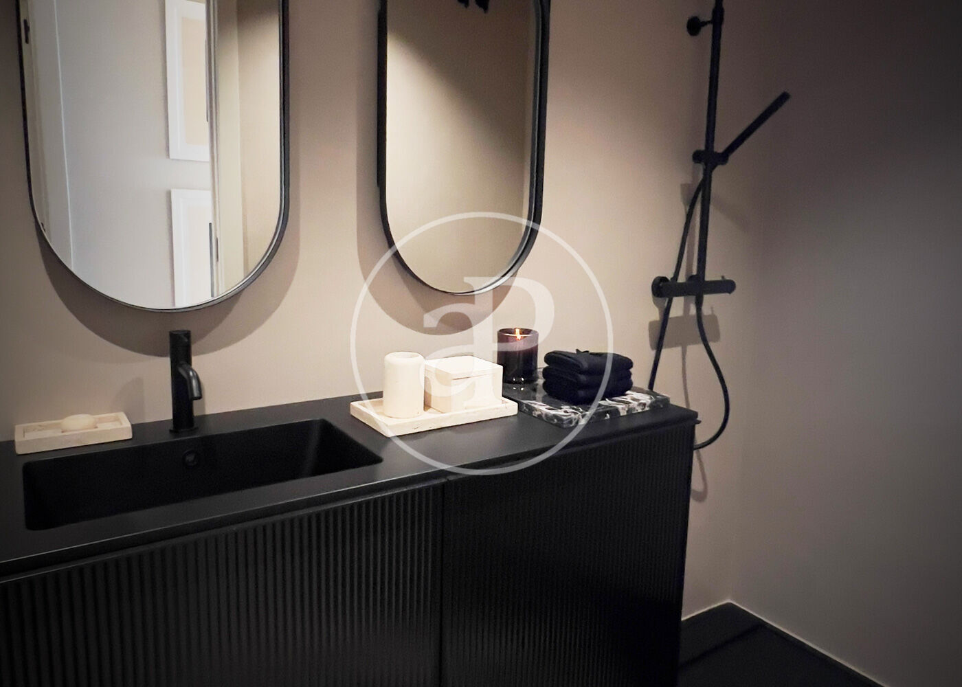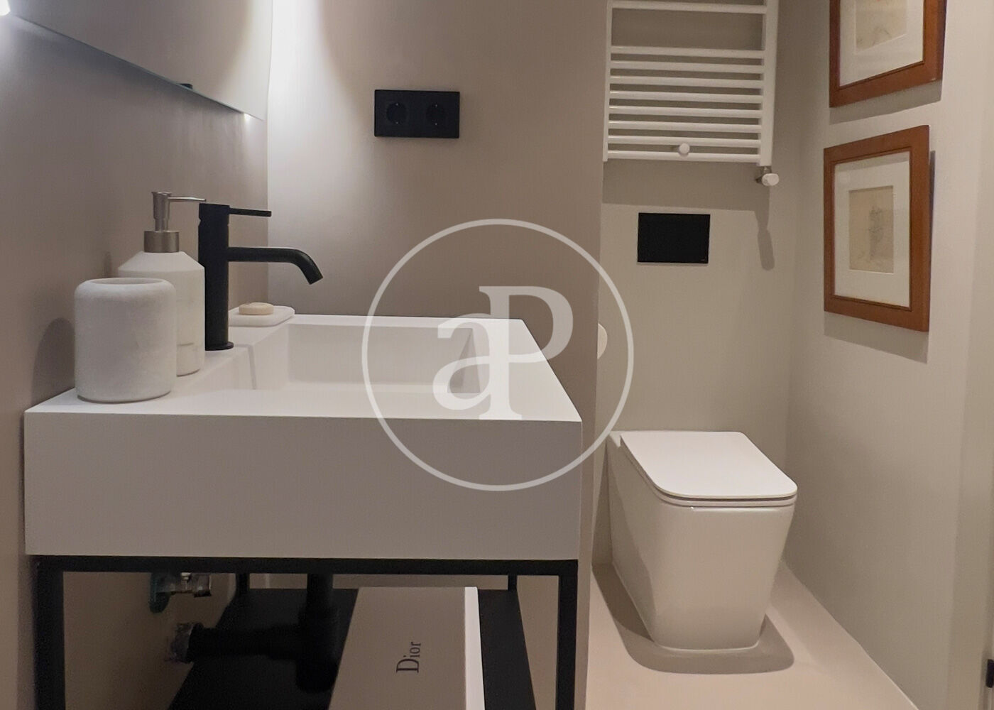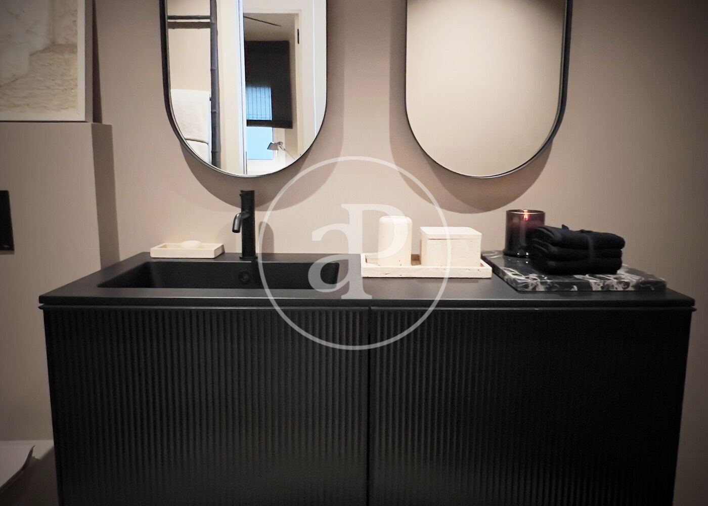 Todos los detalles de este piso han sido perfectamente pensados; el mobiliario, los detalles, la iluminación, la comodidad y el diseño .... nada ha sido pasado por alto. Los suelos combinan el parket de espiga con el cemento pulido y los cerramientos garantizan la máxima tranquilidad y eficiencia energética