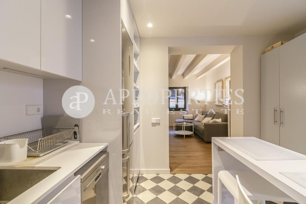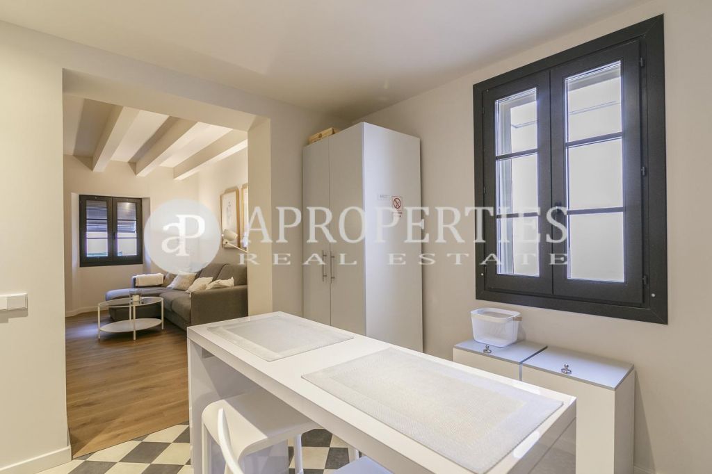 Este maravilloso piso se localiza en un enclave estratégico del cosmopolita y atractivo que se sitúa en el barrio del Borne, en Barcelona, muy cerca del Parque de la Ciudadela y el Arco de Triunfo, encontramos éste piso que combina diseño vanguardista con elementos antiguos recuperados y acabados de alta calidad. El edificio destaca por su preciosa fachada de piedra completamente rehabilitada, preciosos arcos y columnas, su señorial vestíbulo de entrada y la altura de los techos de sus viviendas. Se trata de un agradable piso de 60m², compuesto por un salón y una cocina abierta totalmente equipada en dos ambientes y una preciosa suite con armarios y un baño completo. La vivienda está totalmente amueblada, equipada y con menaje, perfecto para una pareja o persona sola. Tiene disponibilidad inmediata y el precio anunciado incluye además de gastos de comunidad e IBI, el servicio de wifi.
