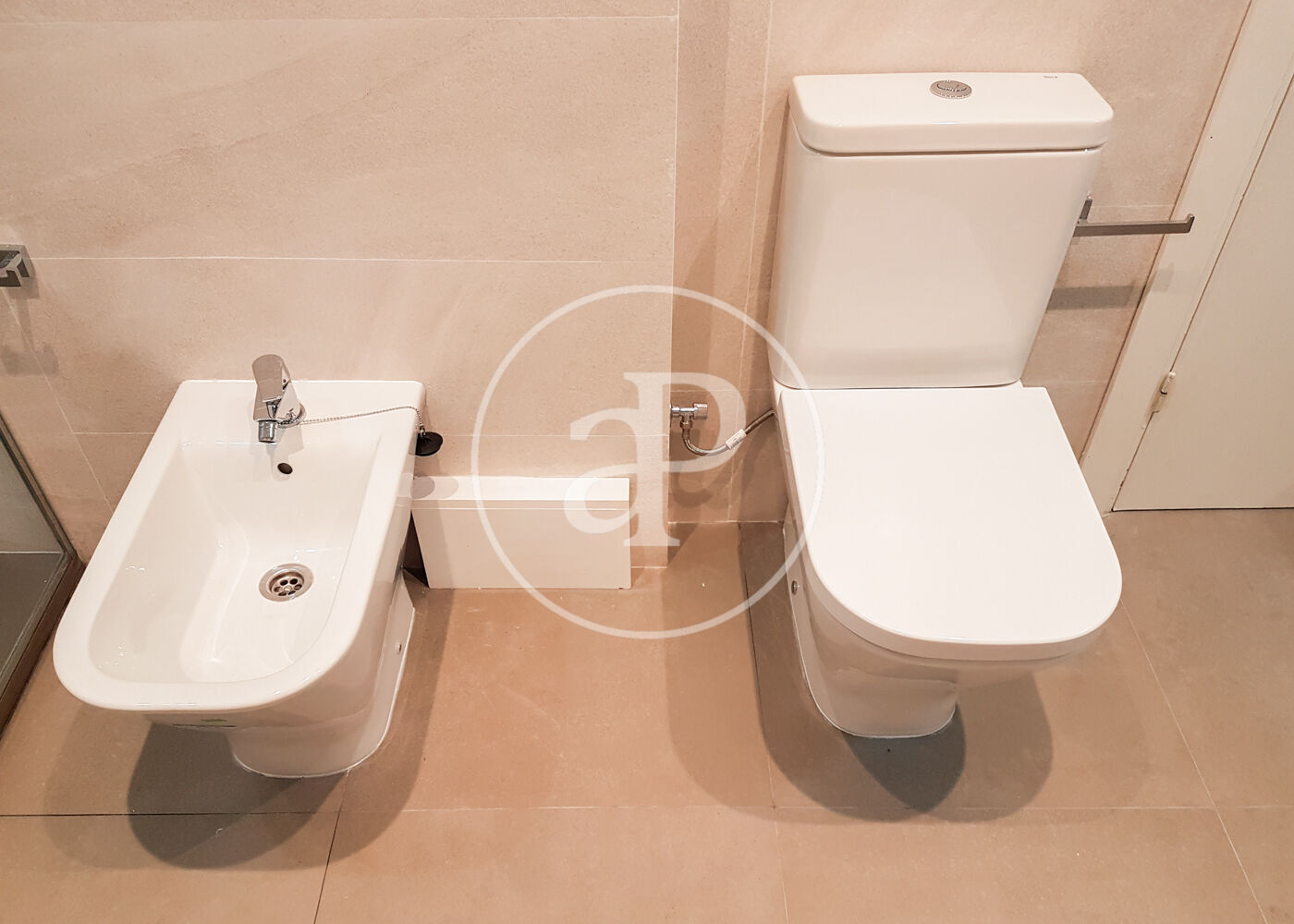 El baño completo, también reformado, presenta un estilo actual y elegante. Cuenta con una ducha amplia con mampara de cristal, grifería de calidad y mueble de lavabo con almacenamiento.