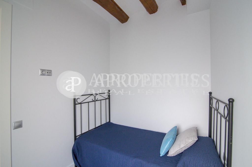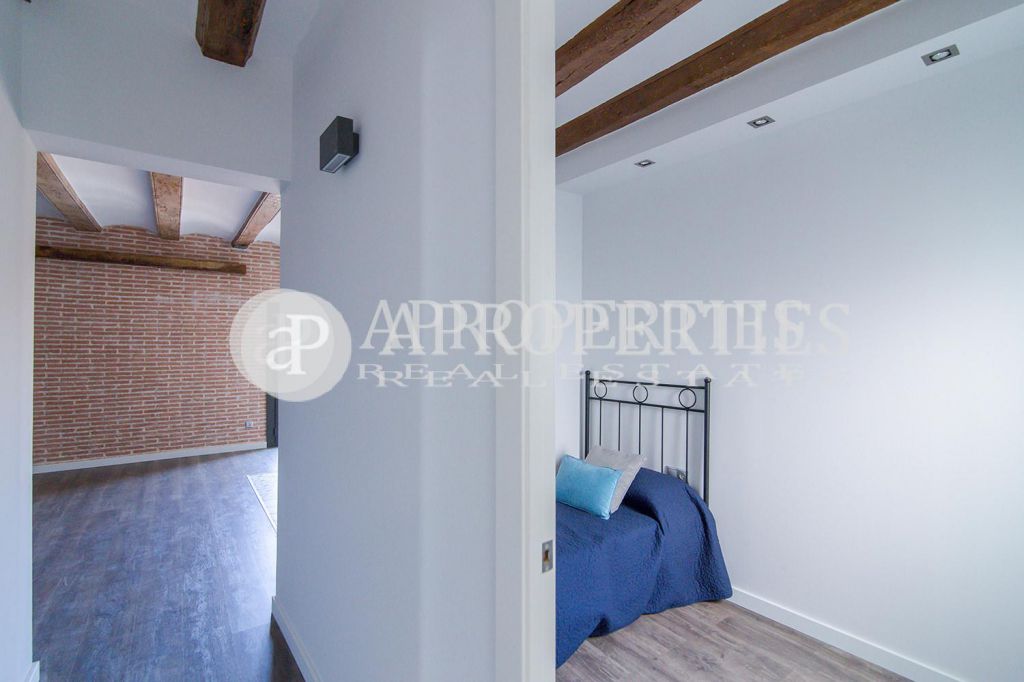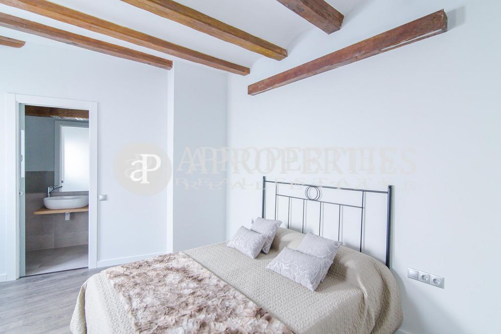 En una céntrica y tranquila calle de la zona alta del barrio del Born, muy de moda y conocido, cerca del Arc de Triomf y de la plaza Sant Pere, rodeado de servicios y comercios, encontramos este magnífico piso totalmente reformado, ubicado en la última planta de una finca regia de finales de 1.800, rehabilitada, con ascensor y con un espacio común para aparcar las bicicletas. El piso de 84m2 todo exterior consta de; un amplio salón-comedor con cocina integrada que goza de una increíble luz natural por su orientación a Tarragona, dos dormitorios, uno de ellos en suite, y un lavabo de cortesía completo con ducha. En el recibidor hay un espacio dedicado a la zona de aguas. En la planta superior encontramos la terraza comunitaria desde la cual se puede apreciar una vista 360º de la ciudad con los edificios emblemáticos de la Barcelona.