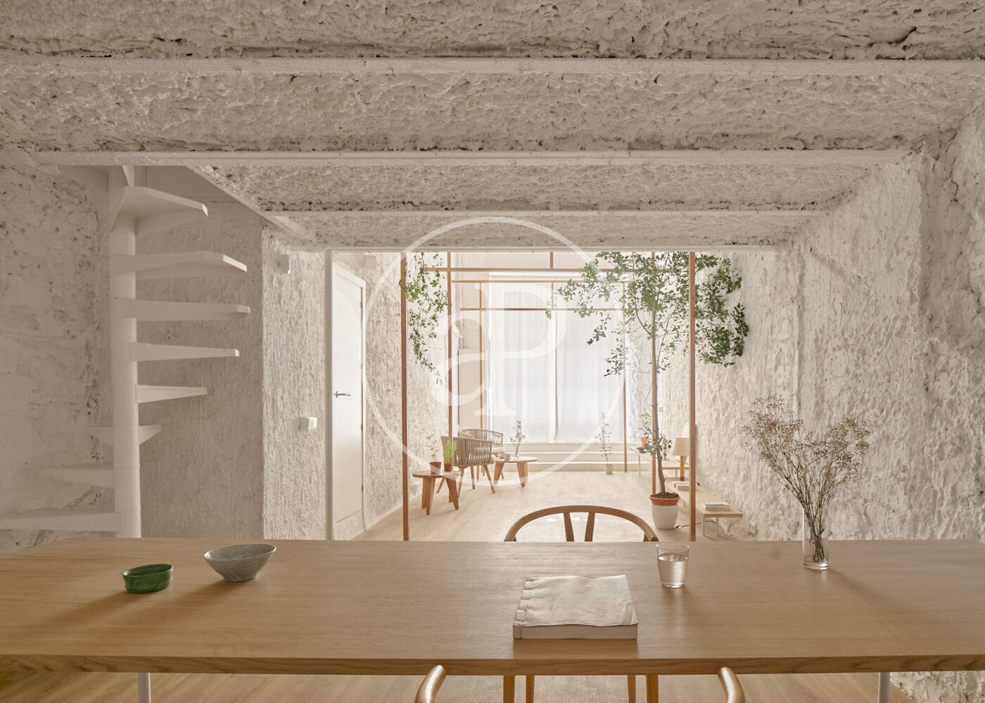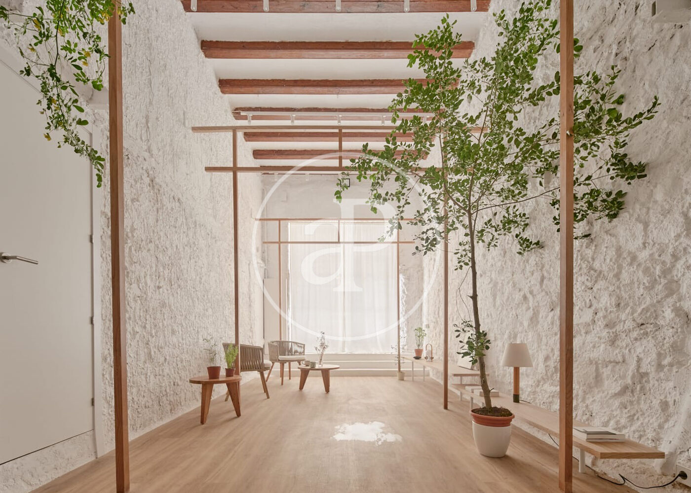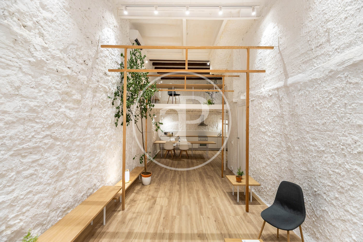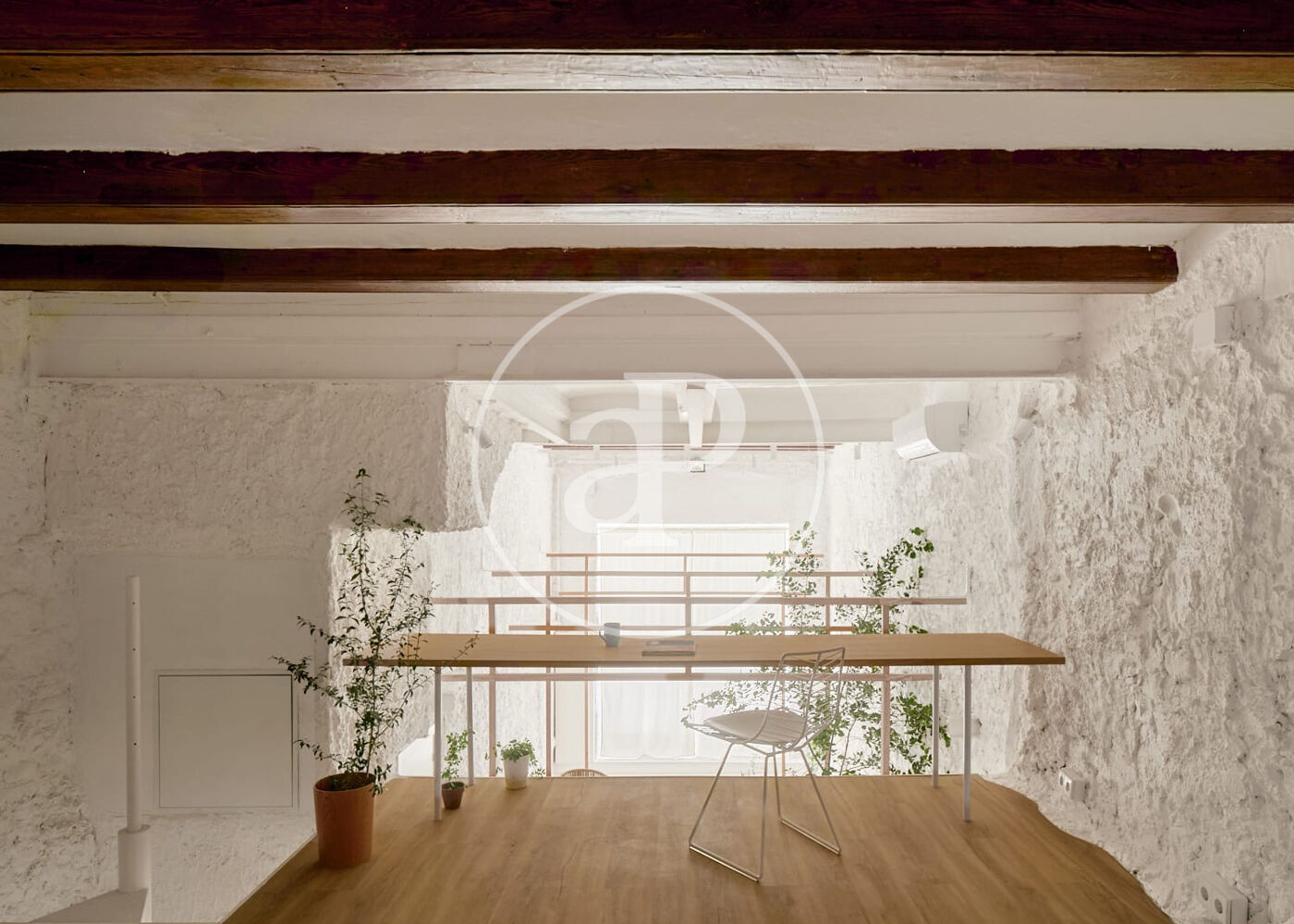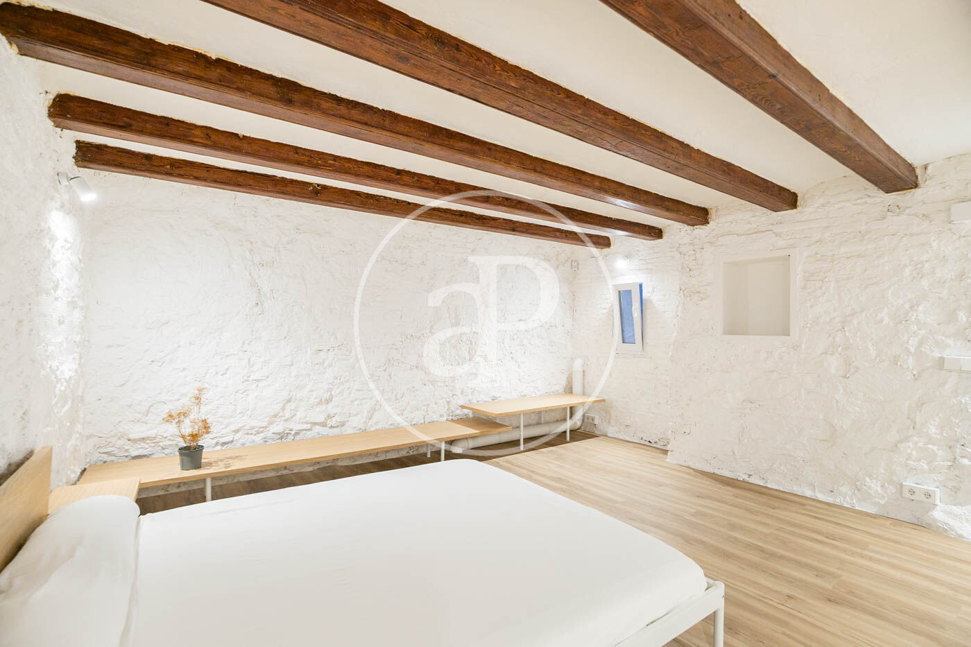 Totalmente reformado, este Loft conserva la esencia de las construcciones tradicionales de la zona, destacando con sus techos de cinco metros de altura con vigas de madera a vista, que aportan calidez y carácter a el espacio. La sensación de amplitud es impresionante, creando un ambiente diáfano y acogedor.