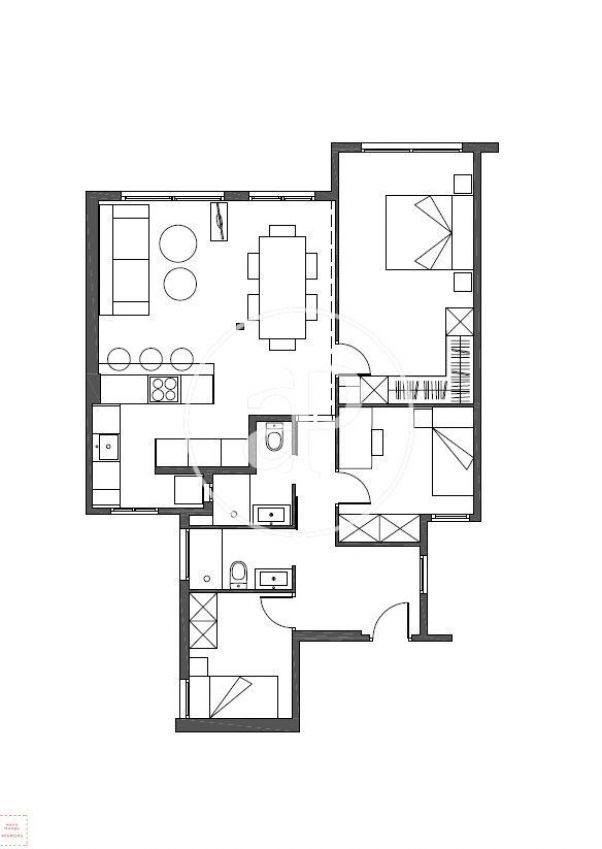 Todos los tabiques se pueden tirar, por lo que se podría hacer una reforma integral a su gusto.