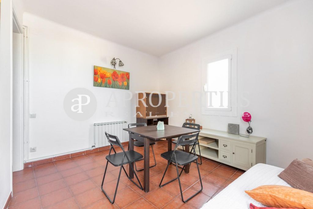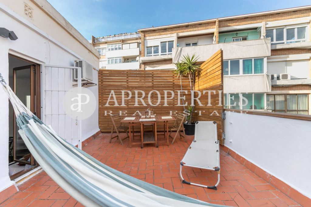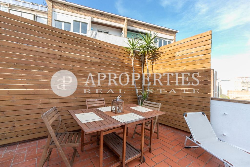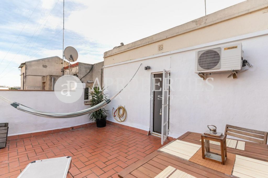 Ubicado en el barrio del Fort Pienc, en un enclave estratégico, enfrente del Teatro Nacional de Cataluña; rodeado de comercios y restaurantes, muy bien conectado con el transporte público y con los principales accesos a la ciudad, encontramos este luminoso ático de 65m² amueblado con terraza de 20m².