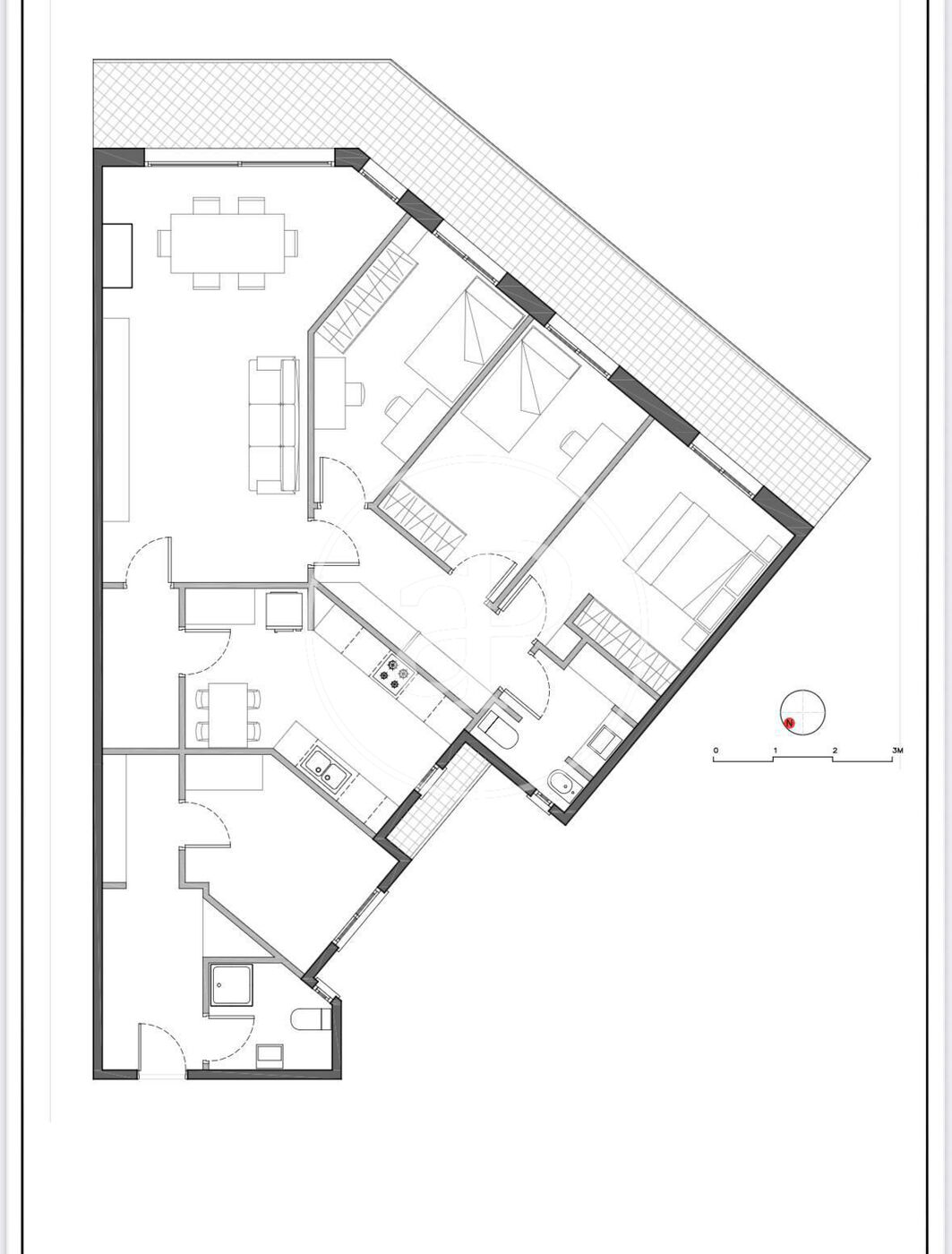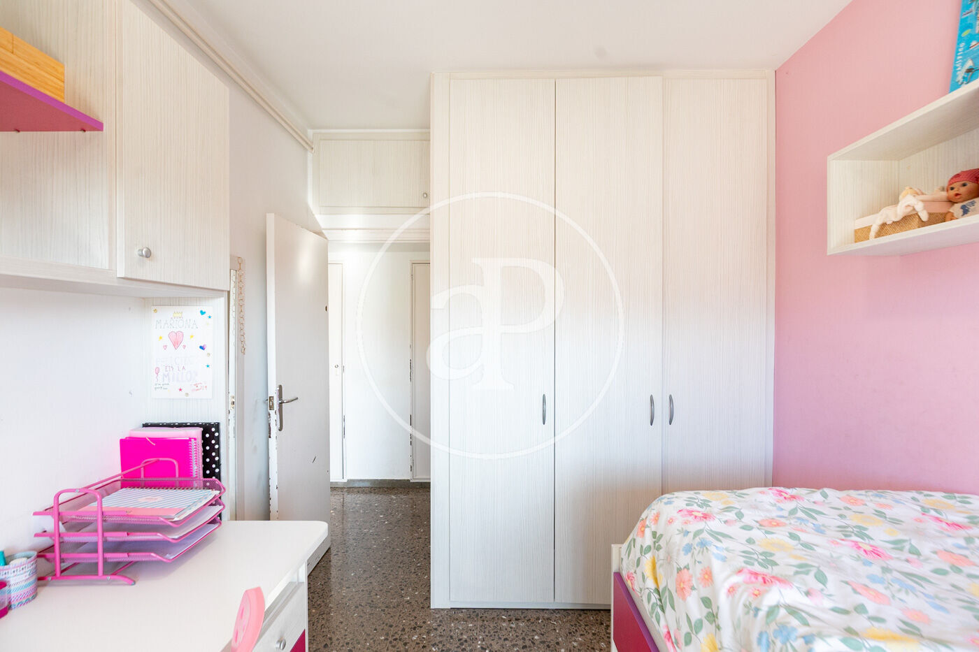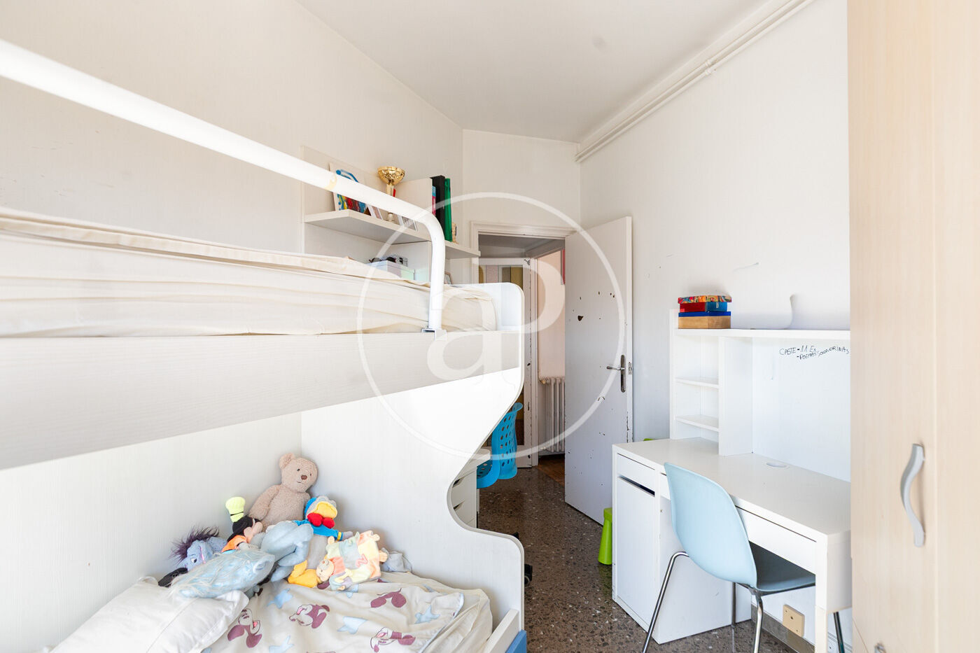 Accedemos a esta agradable vivienda de 126m2 y 24m2 de terraza, por un amplio recibidor que da paso a la primera habitación orientada a patio de luces y a un baño completo. A continuación, encontramos una gran cocina independiente (que podría abrirse al salón fácilmente) con zona office y de aguas. Completa la zona de día un amplio y luminoso salón comedor con salida directa a una aprovechable terraza. La zona de noche consta de 3 amplias habitaciones exteriores con mucha luz natural y un gran baño completo. Al ser una construcción por pilares, la vivienda puede tener diferentes opciones de actualización y/o redistribución.