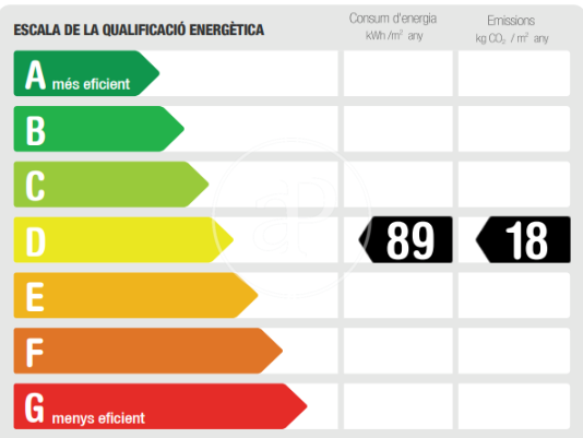 Más eficiente Menos eficie Calificación energética Consumo energía Kw h/m² año Emisiones Co/m² año 89.00 18.00