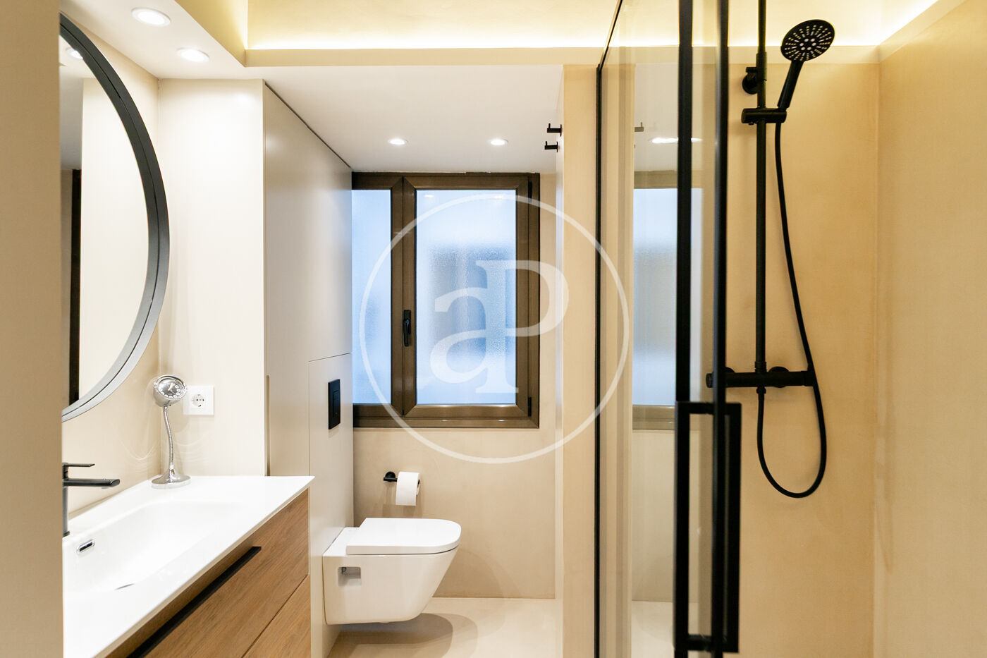 La zona de noche ofrece una habitación doble de generosas dimensiones, un pasillo habilitado como vestidor, y un baño moderno con ducha.