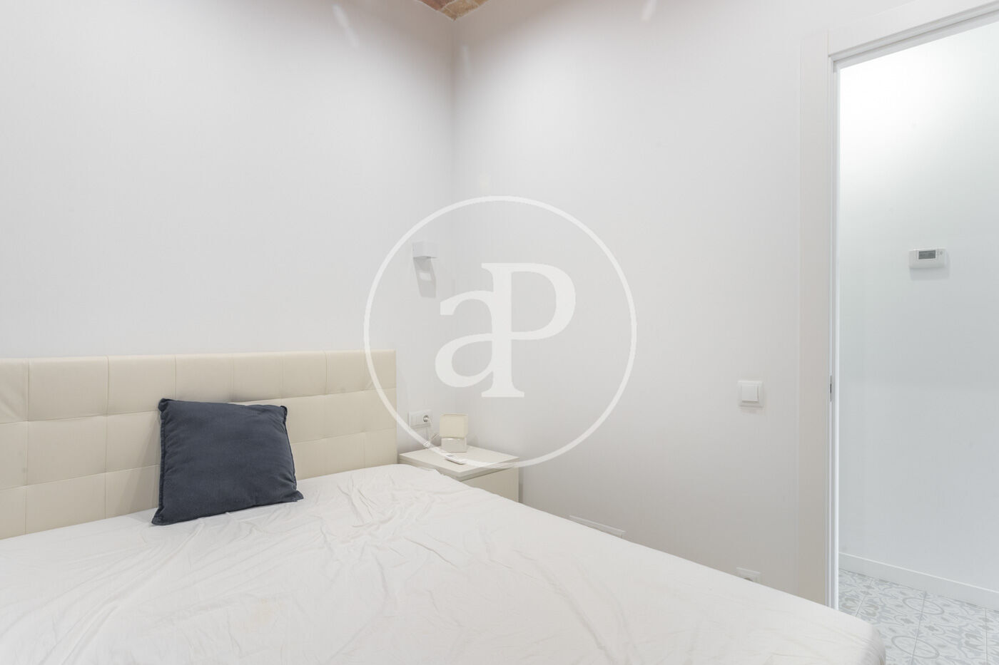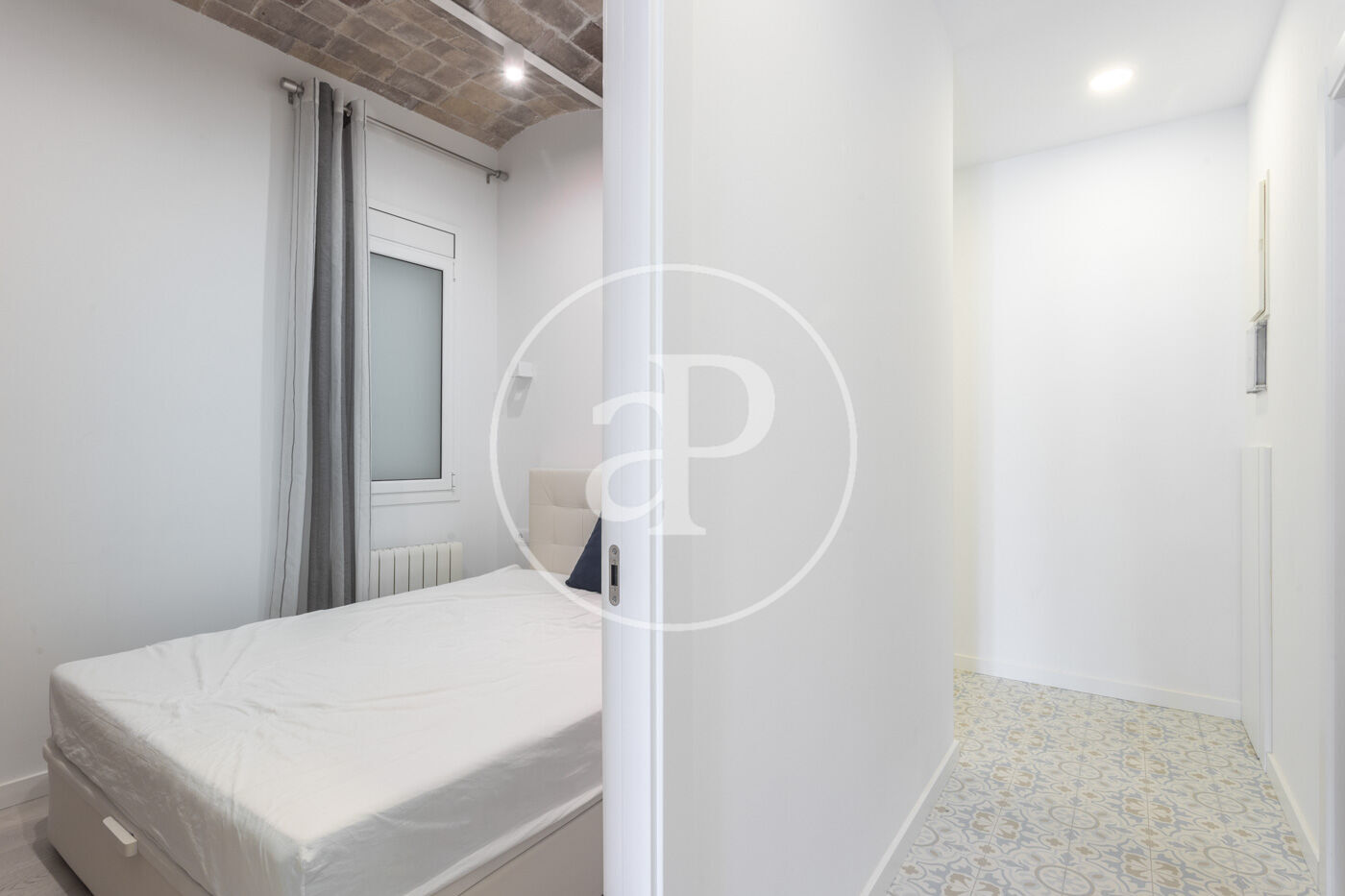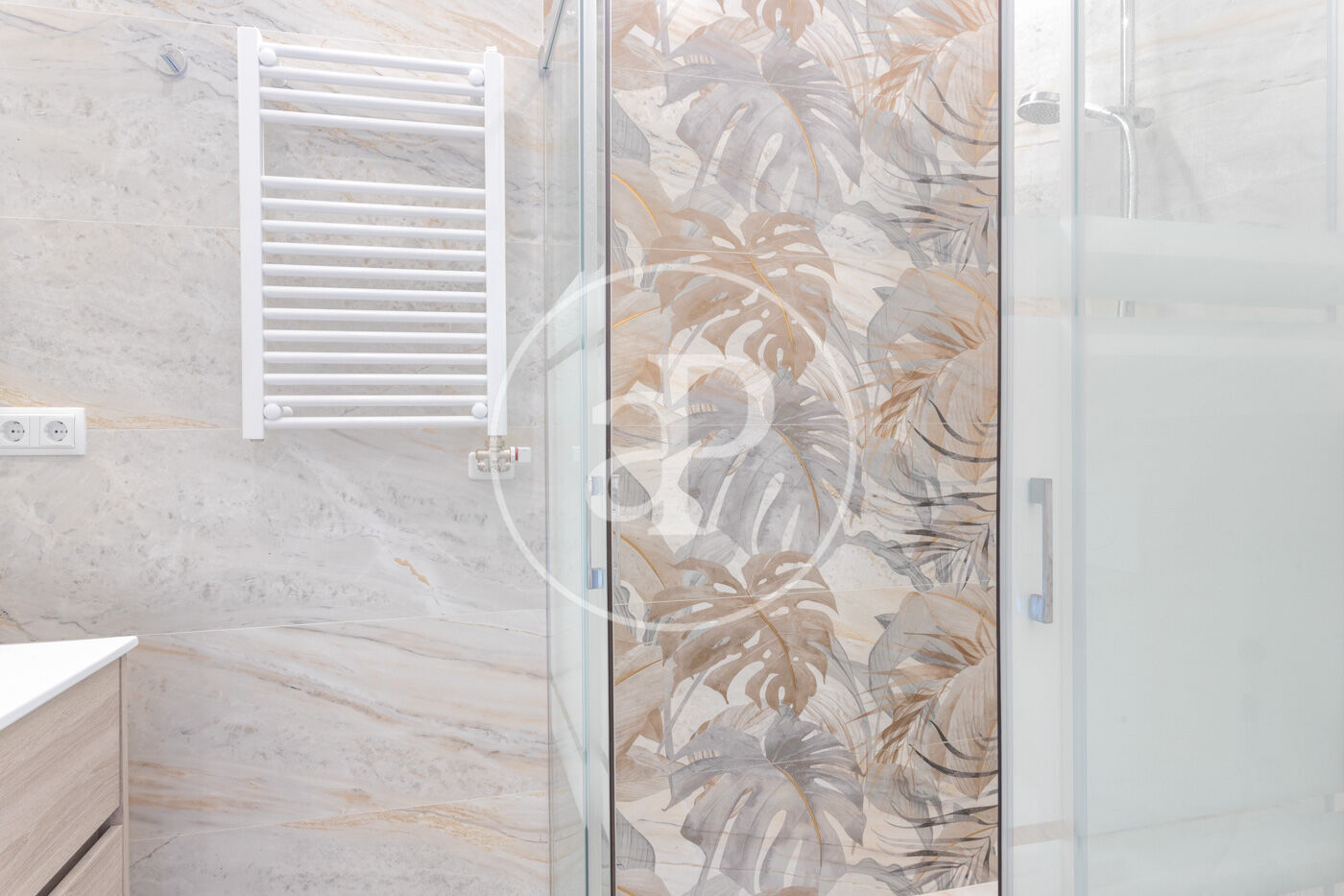 Este apartamento se entrega completamente amueblado y equipado incluso con menaje de cocina y combina a la perfección la decoración moderna con los suelos hidraulicos originales.