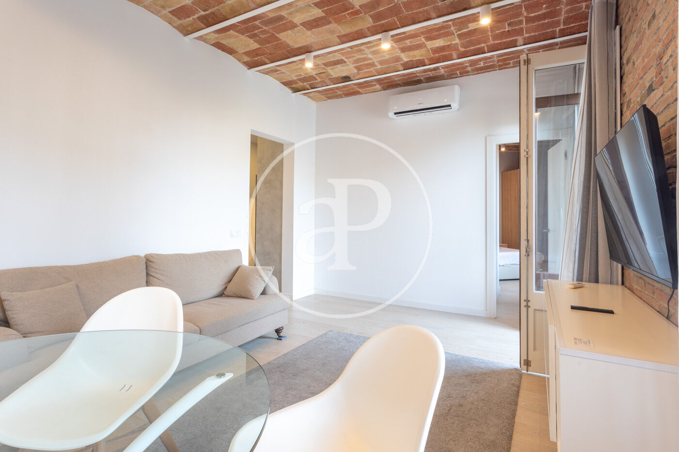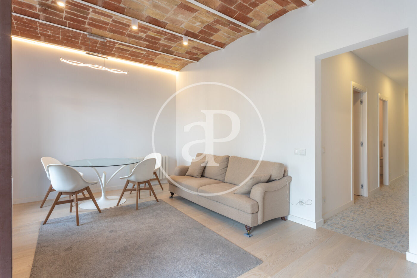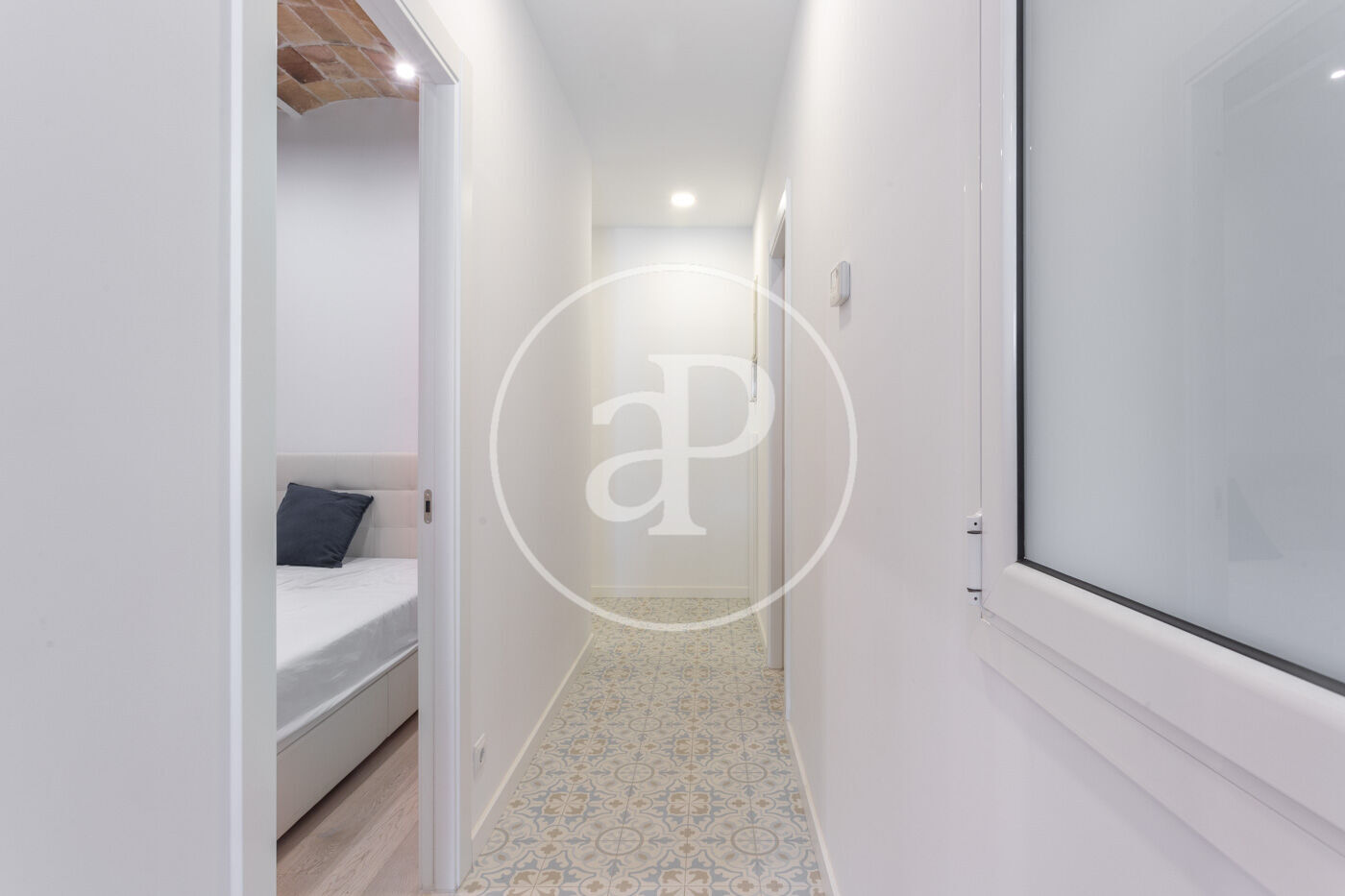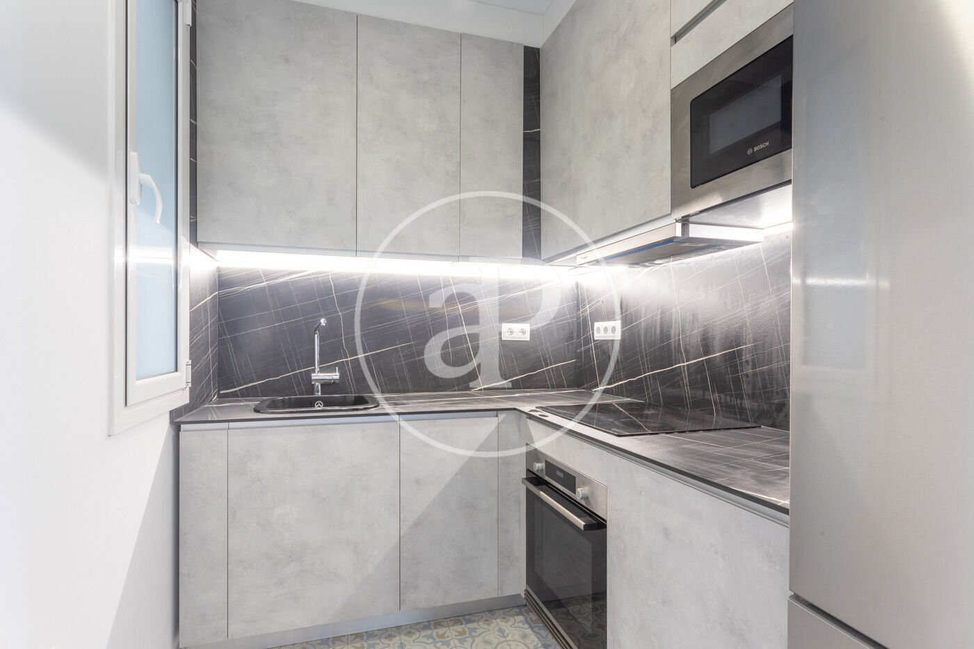 Este apartamento se entrega completamente amueblado y equipado incluso con menaje de cocina y combina a la perfección la decoración moderna con los suelos hidraulicos originales.