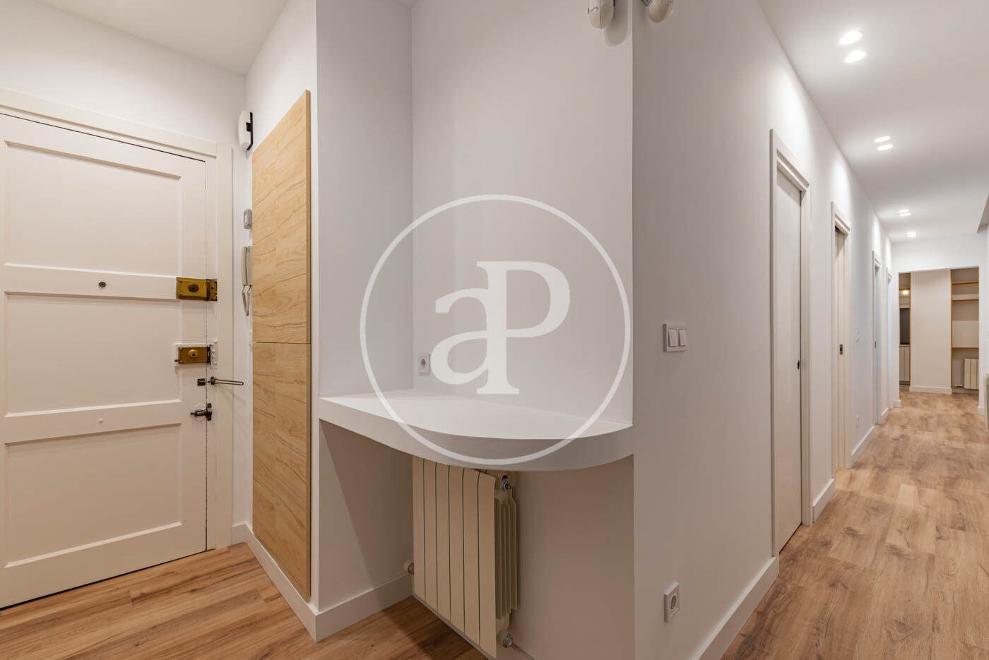 El apartamento cuenta con una superficie de 202 metros cuadrados, lo que lo convierte en un espacio amplio y cómodo para vivir. Todo ha sido recientemente reformado y se encuentra en proceso de amueblado para que puedas disfrutarlo a estrenar. Cada uno de los 4 dormitorios cuenta con una cama doble, armarios empotrados y ventanales que permiten la entrada de luz natural. Los tres baños son completos, modernos y están equipados con todo lo necesario para tu confort diario. La zona del salón comedor es muy espaciosa y se encuentra integrada con una cocina abierta, lo que le da un ambiente moderno y agradable. La cocina está completamente equipada con electrodomésticos de alta calidad, y cuenta con una isla para desayunos y comidas rápidas. Además, el salón tiene varios sofás y sillones, una televisión de pantalla plana y una mesa de comedor con capacidad para 8 personas. Además, si estás buscando un lugar para trabajar desde casa, el despacho es el lugar perfecto para hacerlo. Uno de los aspectos más destacados de este apartamento es su increíble ubicación. La calle Lagasca es una de las más exclusivas de Madrid, y se encuentra rodeada de tiendas de lujo, restaurantes y bares de moda. Además, la zona está muy bien comunicada con el transporte público, con varias líneas de autobuses y la estación de metro de Serrano a pocos minutos a pie. En resumen, este apartamento de lujo en la calle Lagasca es una verdadera joya. Con su amplio espacio, diseño moderno, ubicación privilegiada y acabados de alta calidad, ¡es la elección perfecta para aquellos que buscan lo mejor de lo mejor en Madrid! El tiempo mínimo de alquiler es de 1 mes. Los gastos, suministros e Internet de alta velocidad están incluidos en el precio (agua, luz y gas hasta 200€). El piso se entrega tal cual en las fotos, totalmente decorado y equipado con ropa de cama y toallas. Se hará entrega antes o a su llegada al apartamento de un depósito de seguridad de dos meses, el cual le será reembolsado 7 días después de su salida, siempre que el apartamento no presente desperfectos.  ¿Te imaginas vivir aquí?