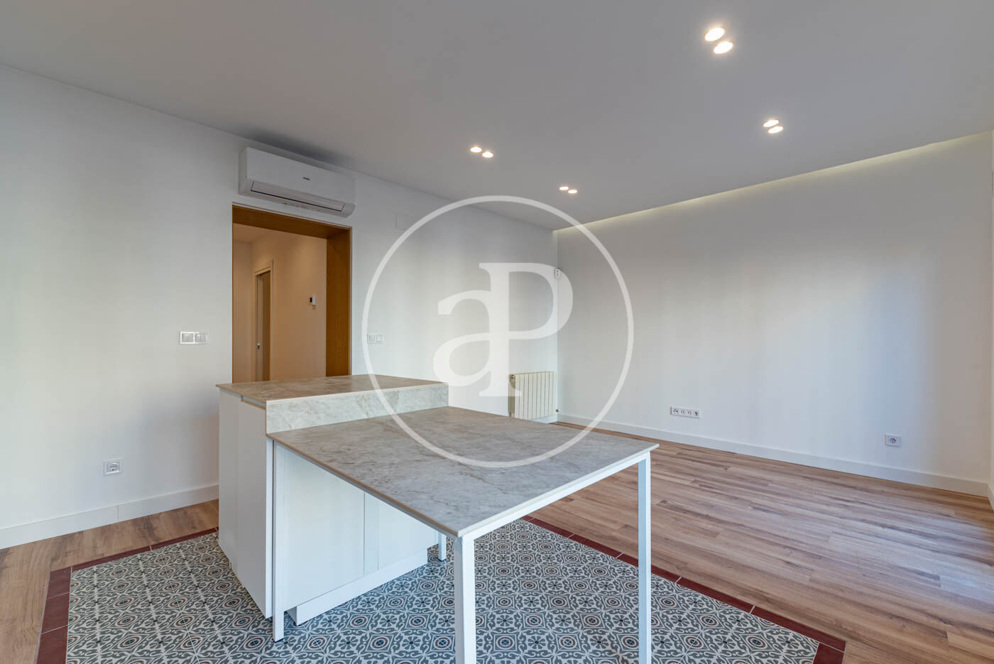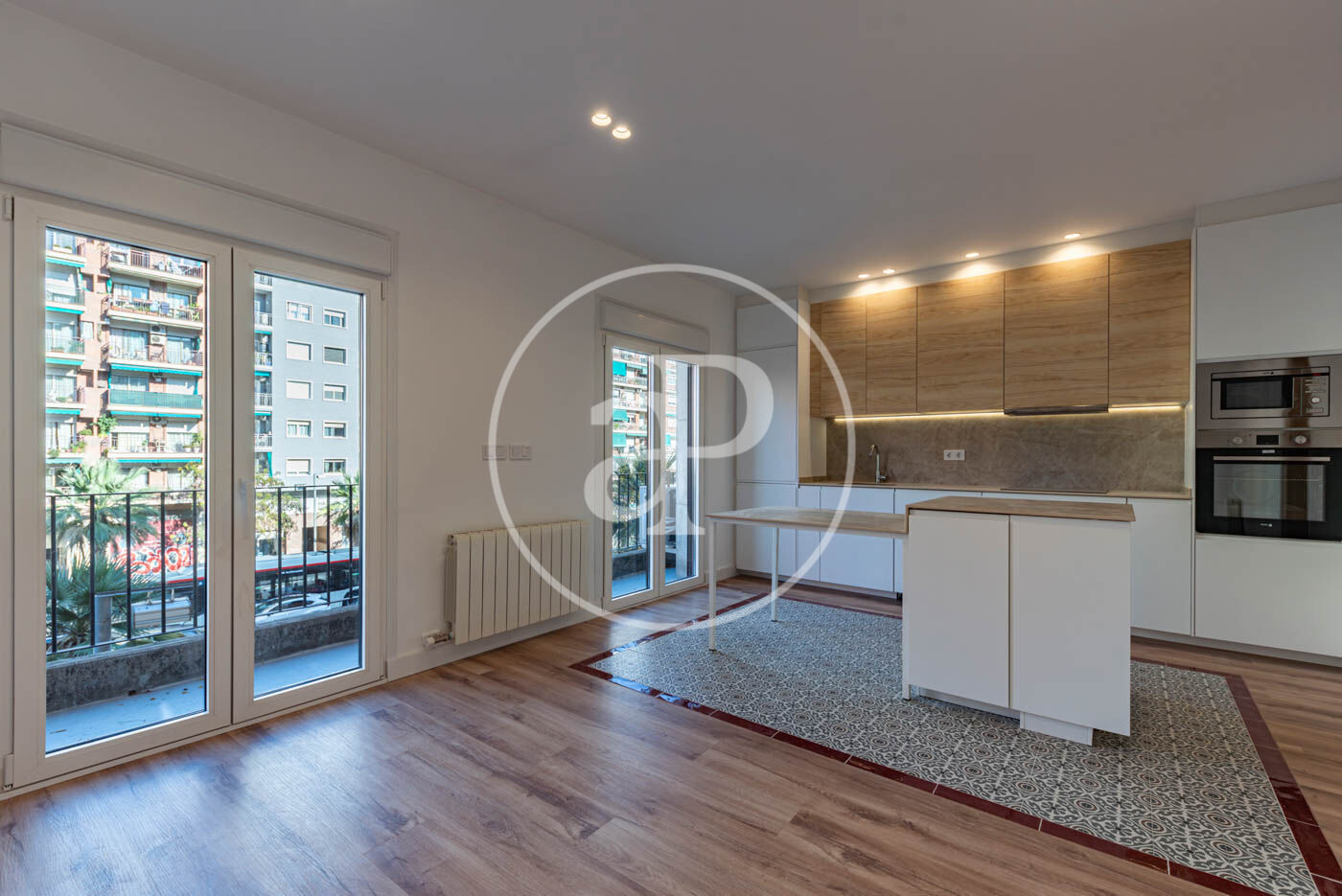 Bienvenido a tu nuevo hogar en la calle Marina, en el corazón del vibrante barrio del Fort Pienc! Este piso renovado a estrenar, con una superficie luminosa de 87 m² construidos, ofrece una experiencia de vida excepcional en un edificio del 1957, ubicado en la tercera planta real y accesible mediante ascensor.