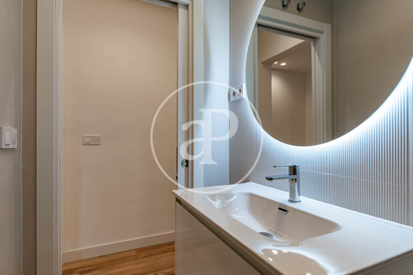 Las ventanas del piso no solo ofrecen vistas a la calle Marina, sino que también garantizan protección contra el ruido exterior y una eficiencia energética excepcional. Este enfoque sostenible crea un ambiente sereno y respetuoso con el medio ambiente en tu hogar.