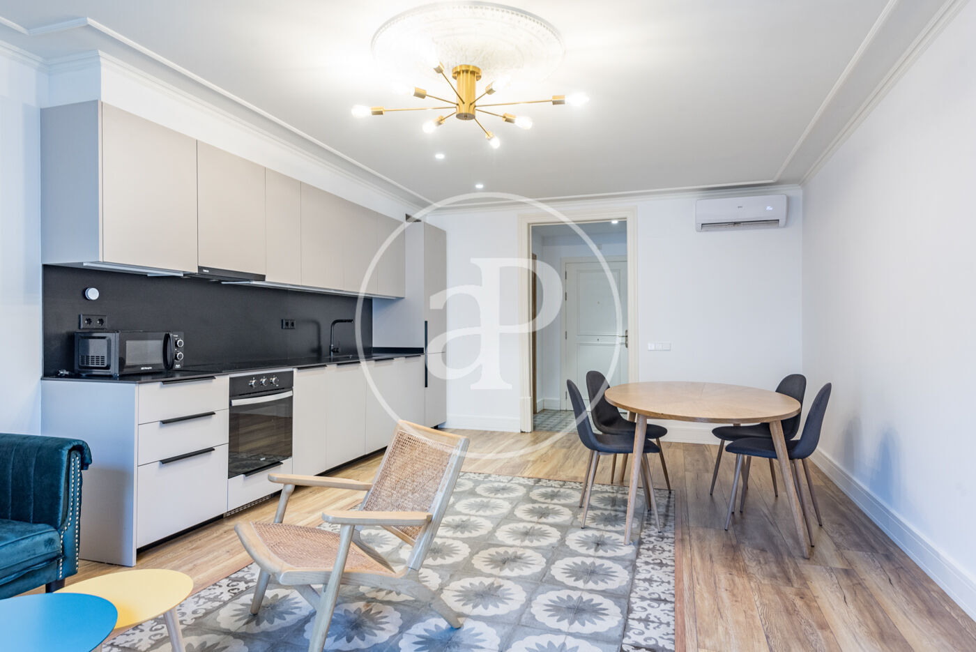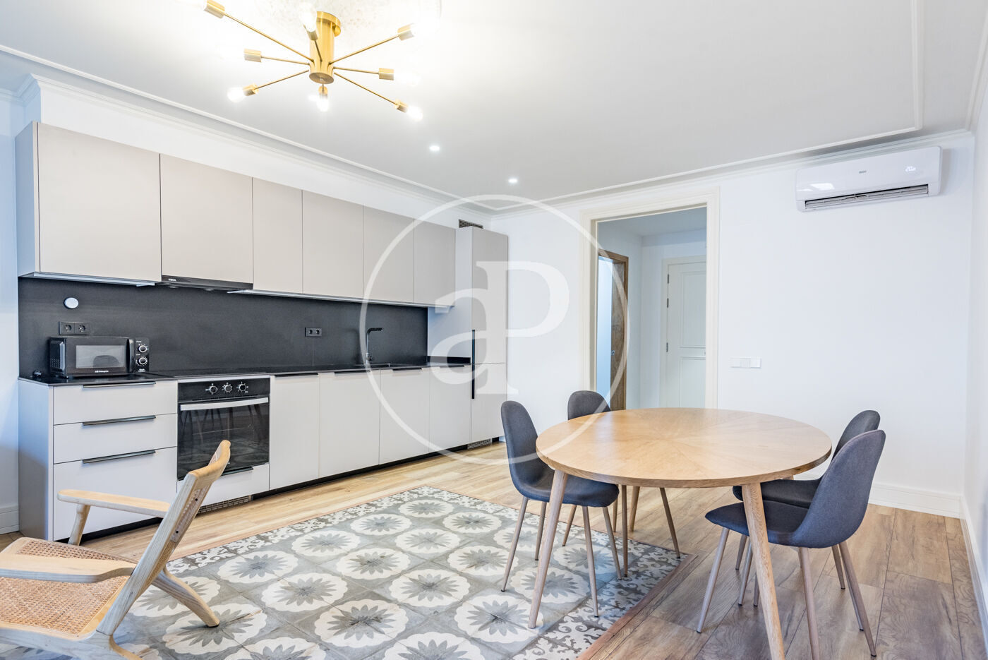Reformado con materiales de altísima calidad, el piso cuenta con suelos de parquet, doble acristalamiento, techos artesonados, mobiliario y electrodomésticos de alta gama. Además, el edificio ofrece servicio de conserjería, ascensor y se encuentra en una primera planta.
