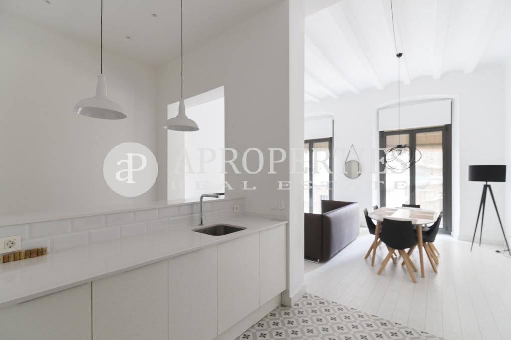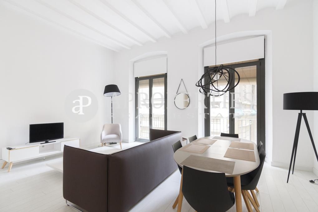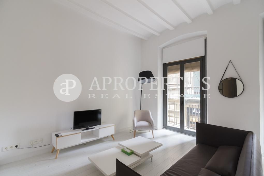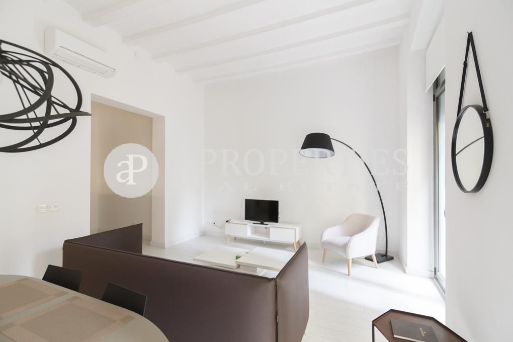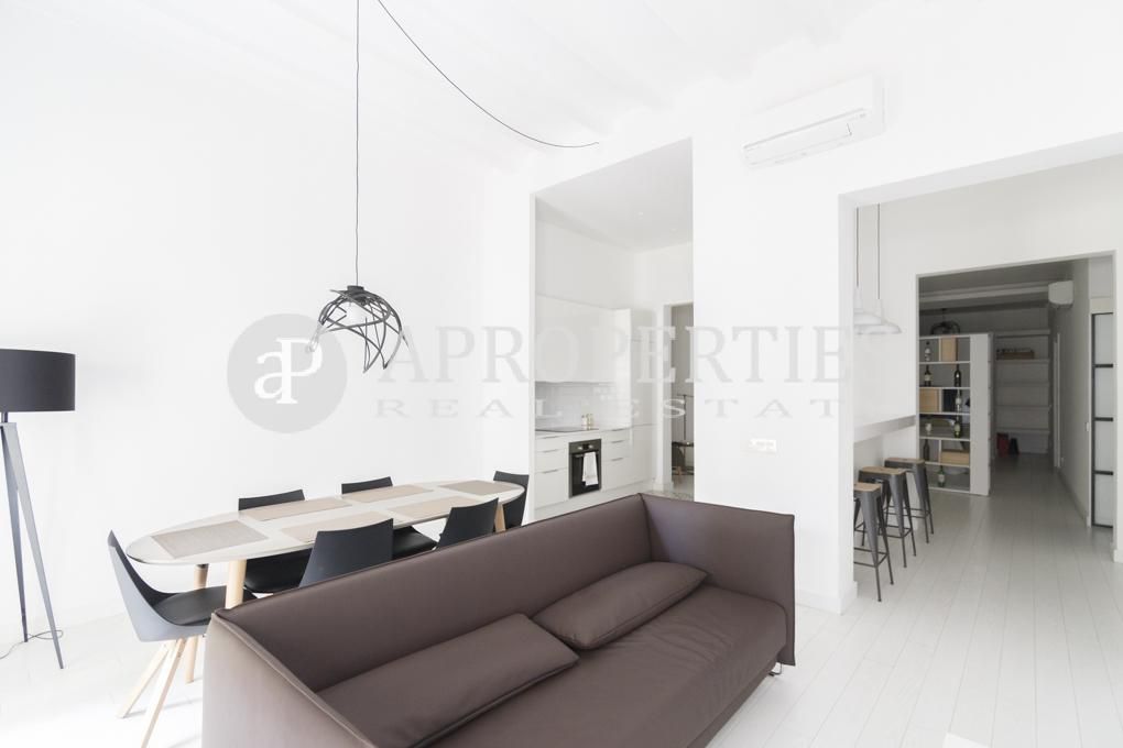 En la calle Santa Anna encontramos este loft moderno y funcional perfecto para una pareja o persona que quiera disfrutar de vivir en el corazón del gótico. Dispone de un amplio salón comedor con cocina americana totalmente equipada. El dormitorio está separado por un librero y tiene un amplio vestidor con baño completo y un aseo para visitas. Equipado con lavadora/secadora, TV, aire acondicionado en salón y dormitorio.