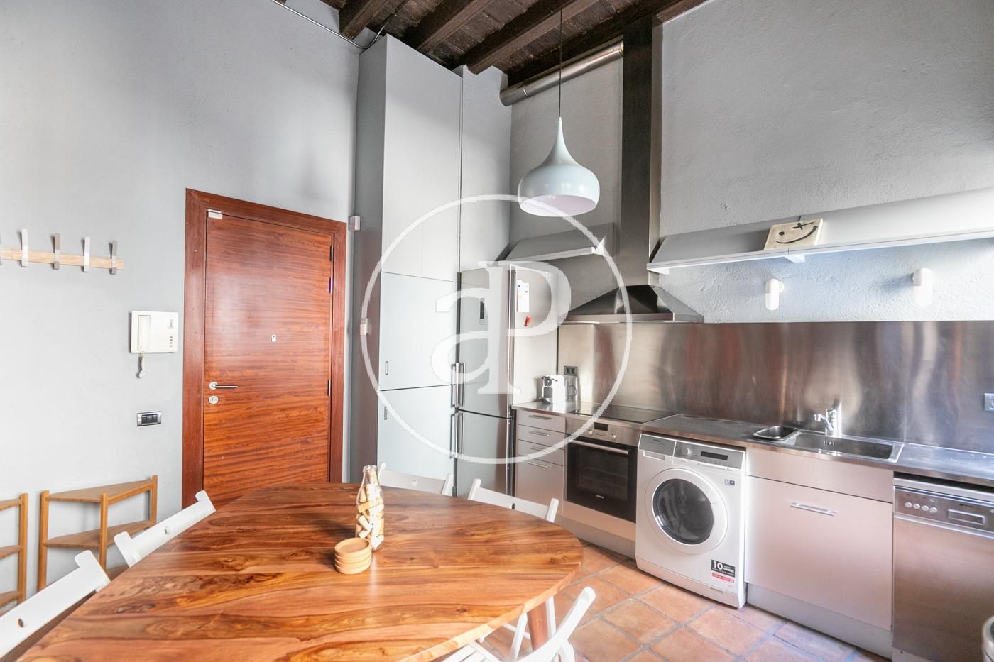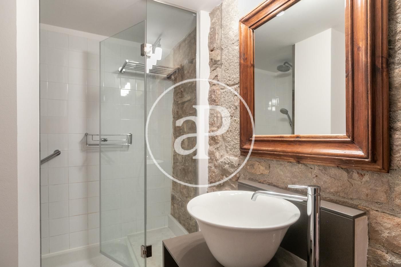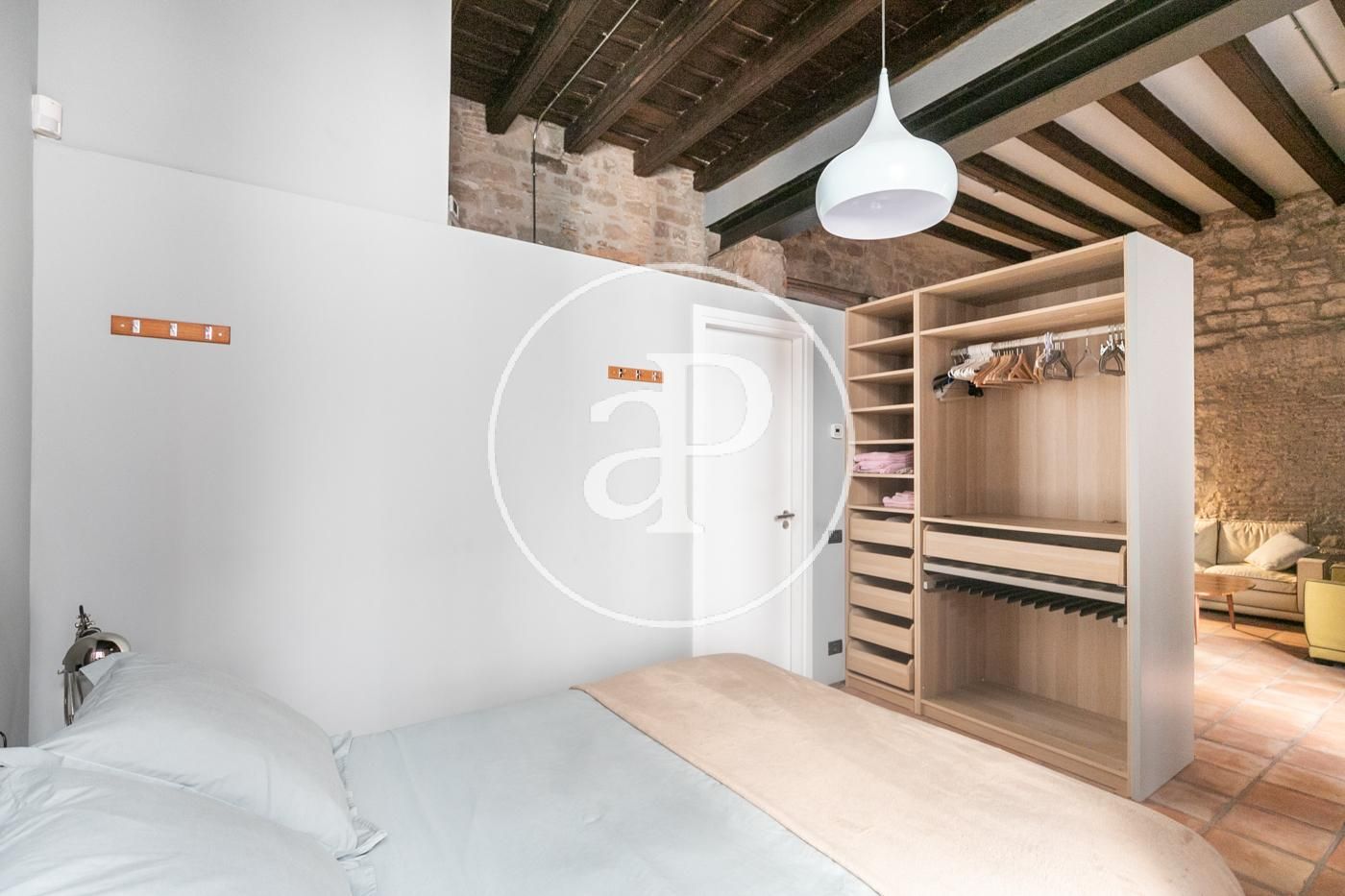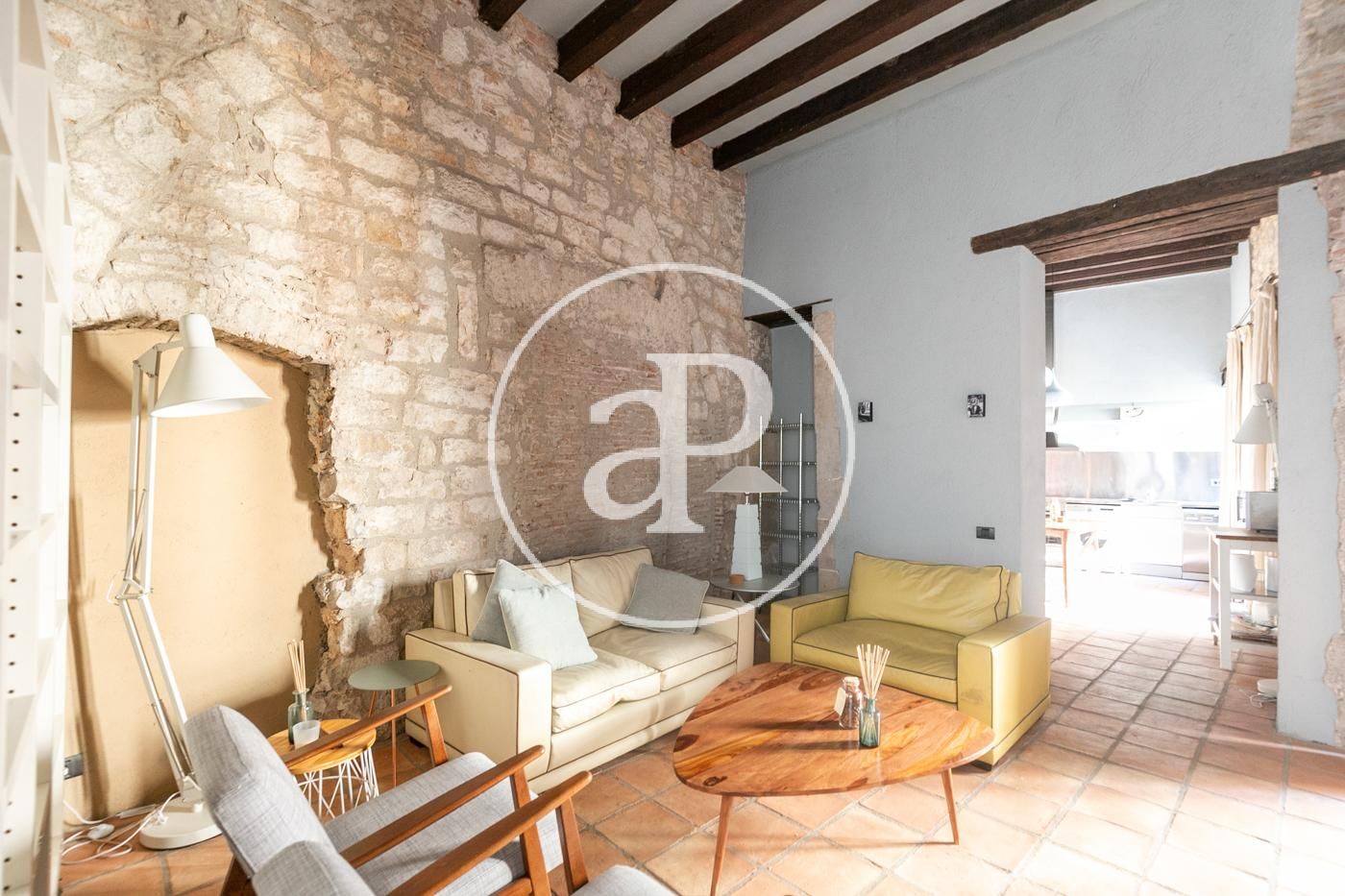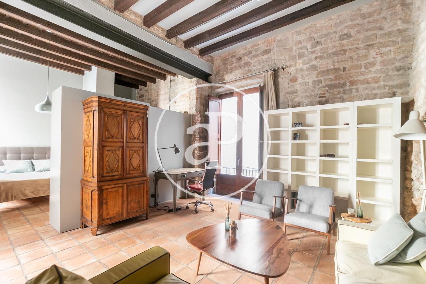 En el emblemático barrio Gótico de Barcelona, a pocos metros de la Plaza Sant Jaume y de la Catedral, se encuentra este histórico palacete gótico rehabilitado con materiales de primera calidad y convertido en pisos que son auténtica obra de arte. Este inmueble, de gran valor arquitectónico, fue rehabilitado en el año 2000 respetando íntegramente su estructura original, y cuenta con arcos, columnas y artesonados del siglo XV. El piso, consta de un espacio abierto de 77m². El techo es de vigas de 6 metros de altura. Su cocina-office y su amplio salón, tienen vistas al bonito y luminoso patio principal de la finca. Tiene un acogedor dormitorio en suite con baño completo. La calefacción es individual de suelo radiante. También dispone de aire acondicionado. Este piso tiene la posibilidad de ser unido al piso contiguo. La finca tiene servicio de conserjería y cada vivienda dispone de un trastero. Hay parking para bicis y motos. Es un lugar privilegiado para disfrutar de la tranquilidad del interior de sus muros y del ambiente de sus calles repletas de historia, comercios y restaurantes.