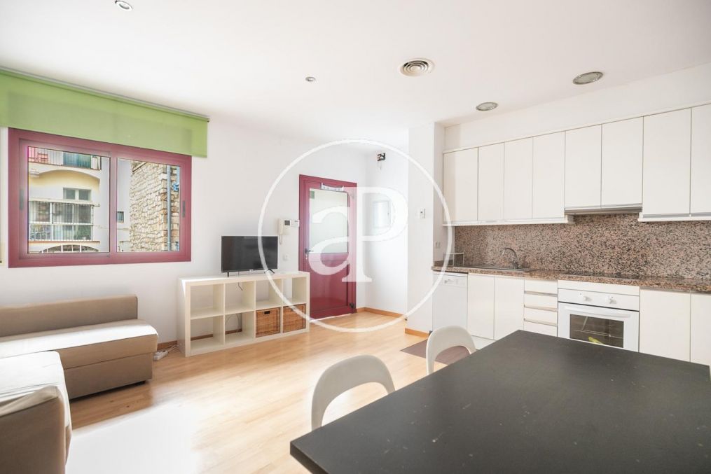 En el centro de Barcelona, en el barrio Gótico a unos pasos de la Plaza Real y Las Ramblas, rodeado de todo tipo de servicios, restaurantes, cafeterías, y acceso a diferentes opciones de transporte público, encontramos este piso amueblado de 70m², cocina equipada tipo americana abierta al salón. Una habitación doble, con una cama doble, un amplio baño completo con bañera. Aire acondicionado y calefacción por conductos, suelo de parqué y ascensor. La finca cuenta con zona comunitaria con una piscina y un solárium. Disponibilidad inmediata. Ideal para una pareja, personas que trabajan en la zona. No mascotas.