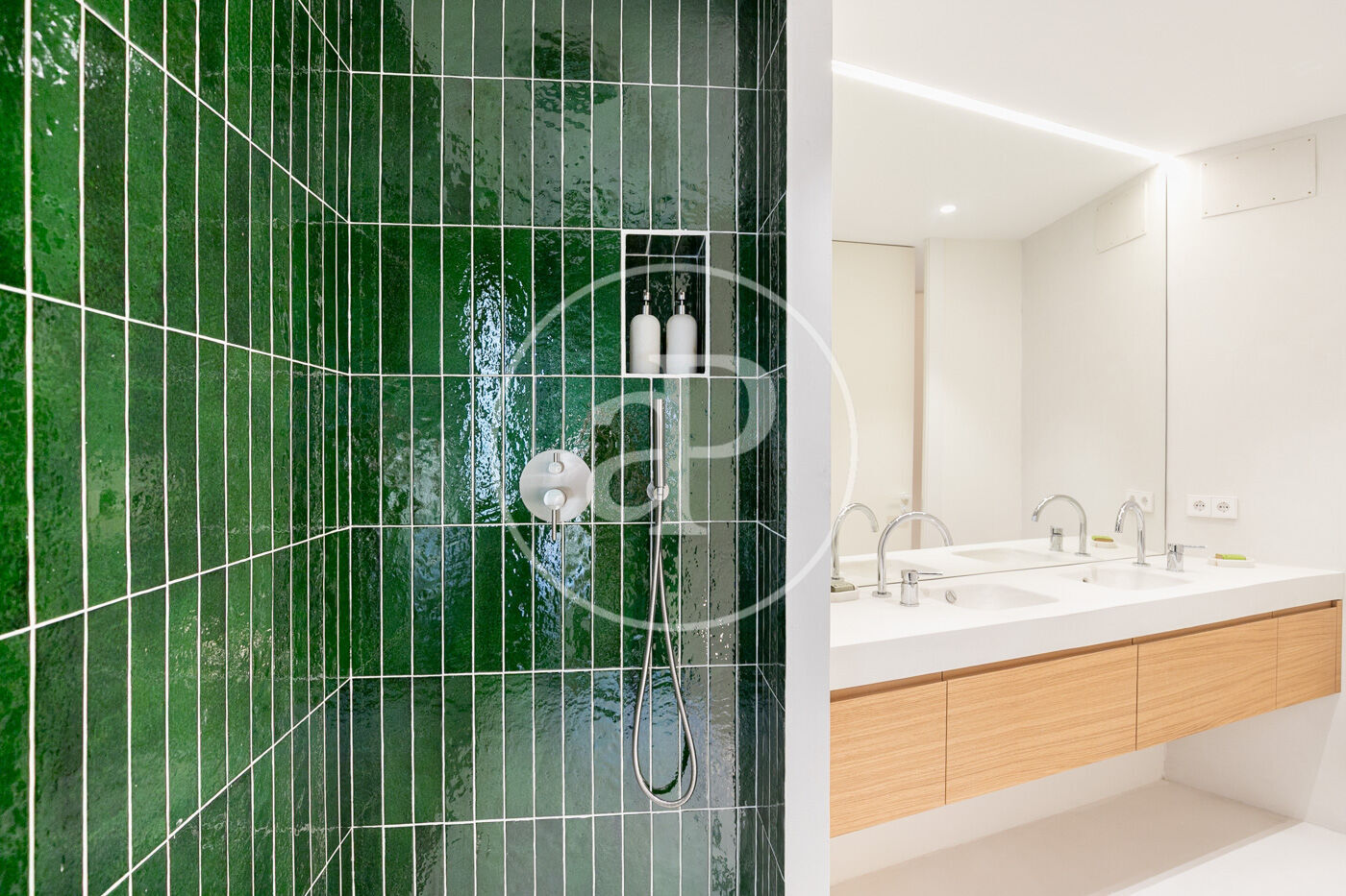 Gracias a su doble orientación y a la presencia de dos patios interiores, el piso disfruta de una luminosidad natural envolvente y de una atmósfera tranquila en medio del dinamismo del centro histórico. Su diseño contemporáneo, con mobiliario a medida e iluminación empotrada, lo convierte en un hogar cómodo y elegante, perfecto tanto para vivir como para recibir.