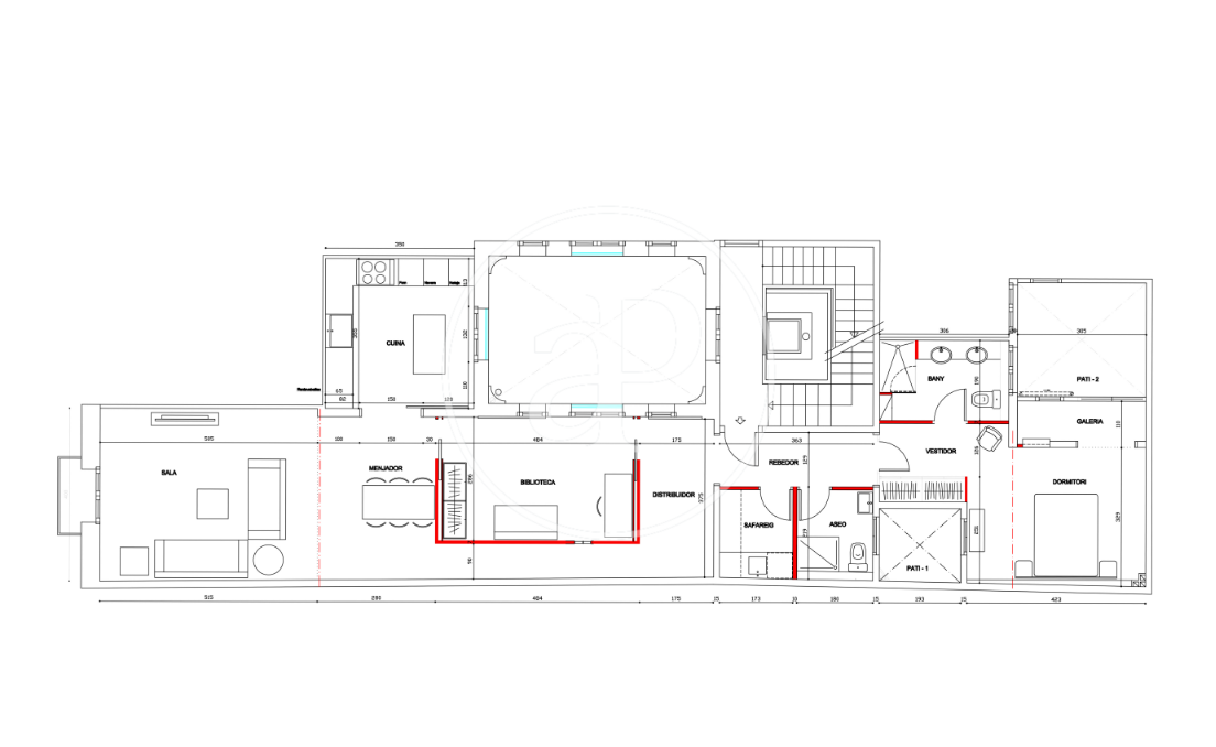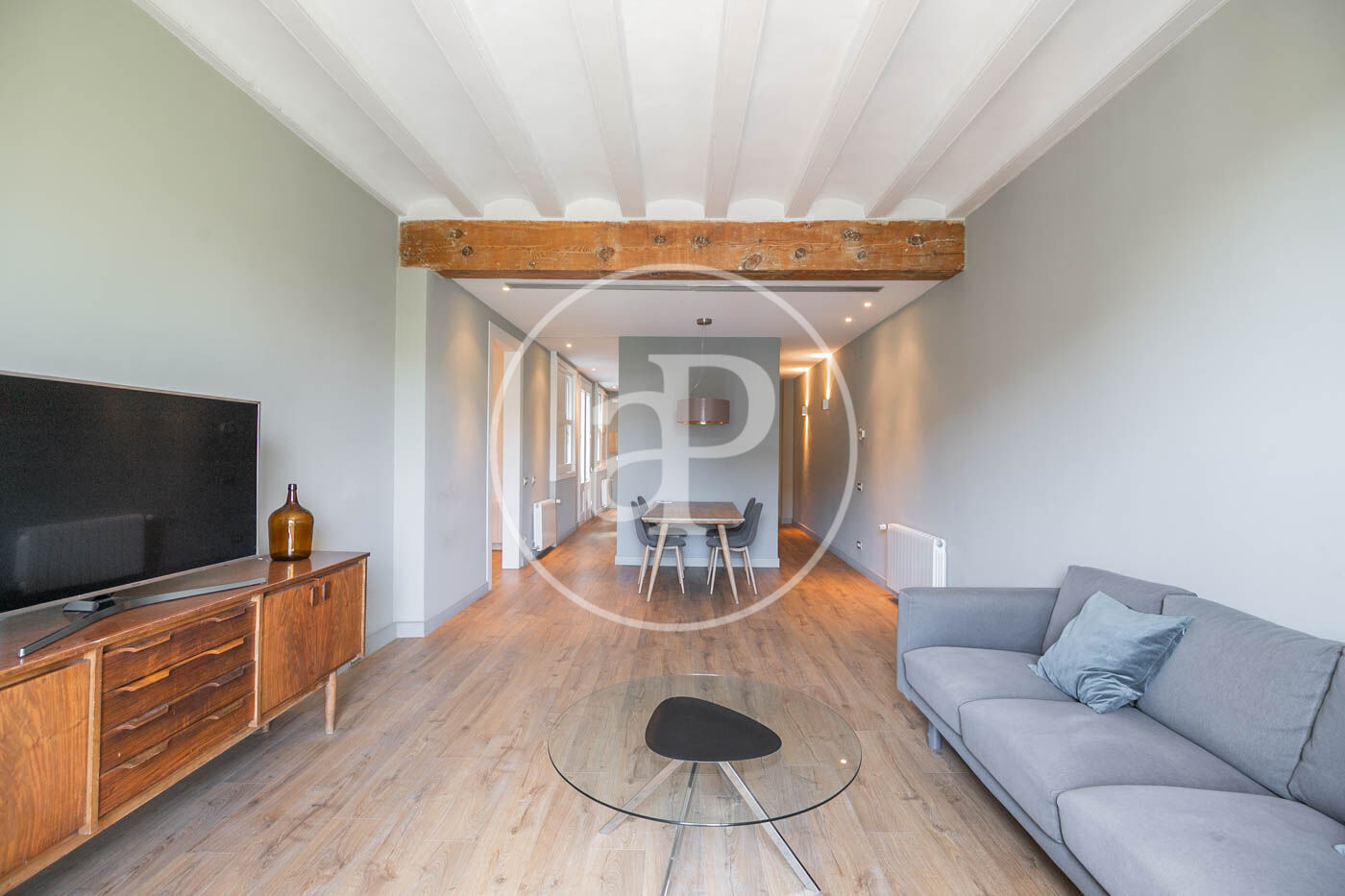 Durante la reforma se han restaurado las vigas de madera originales, que aportan calidez y carácter a la vivienda, y también se han conservado los porticones de madera tradicionales en perfecto estado. Asimismo, se ha renovado todo el sistema de aislamiento, asegurando un alto confort térmico y acústico en todo el piso.