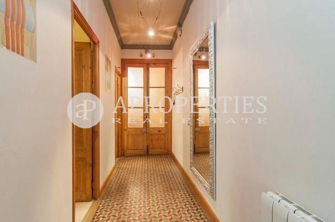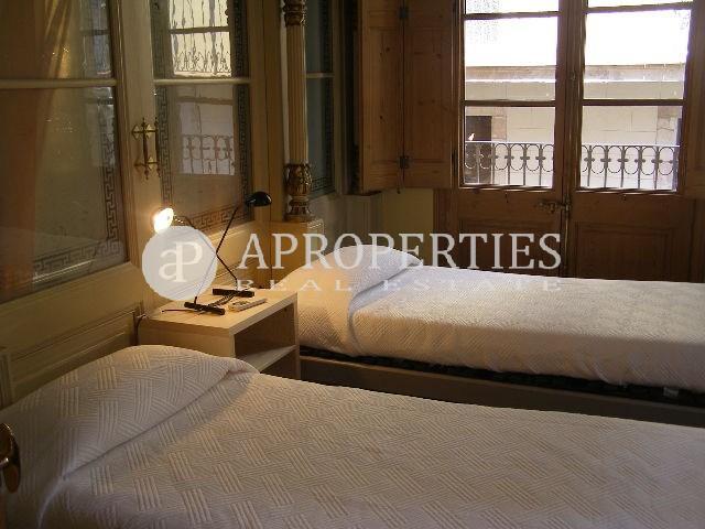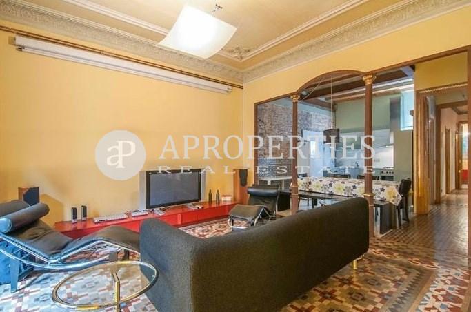 En la conocida calle Avinyó, junto a la Plaza Sant Jaume y muy cerca de Las Ramblas, se encuentra este espectacular piso esquinero de 160m2 + balcón de 10m2. Destaca por la conservación de elementos originales de la época de construcción, así como suelos de mosaico, techos altos y artesonados, paredes de ladrillo visto y carpintería original perfectamente restaurada, combinado con su actual reforma con acabados de primera calidad. Actualmente, la vivienda se distribuye en amplio salón-comedor, con cocina abierta y equipada. La zona de noche tiene tres dormitorios dobles y exteriores que comparten dos baños completos. Además, el piso incorpora un pequeño apartamento, ocupando un espacio totalmente independiente y compuesto por un salón con pequeña cocina y un dormitorio en suite con baño completo con jacuzzi.