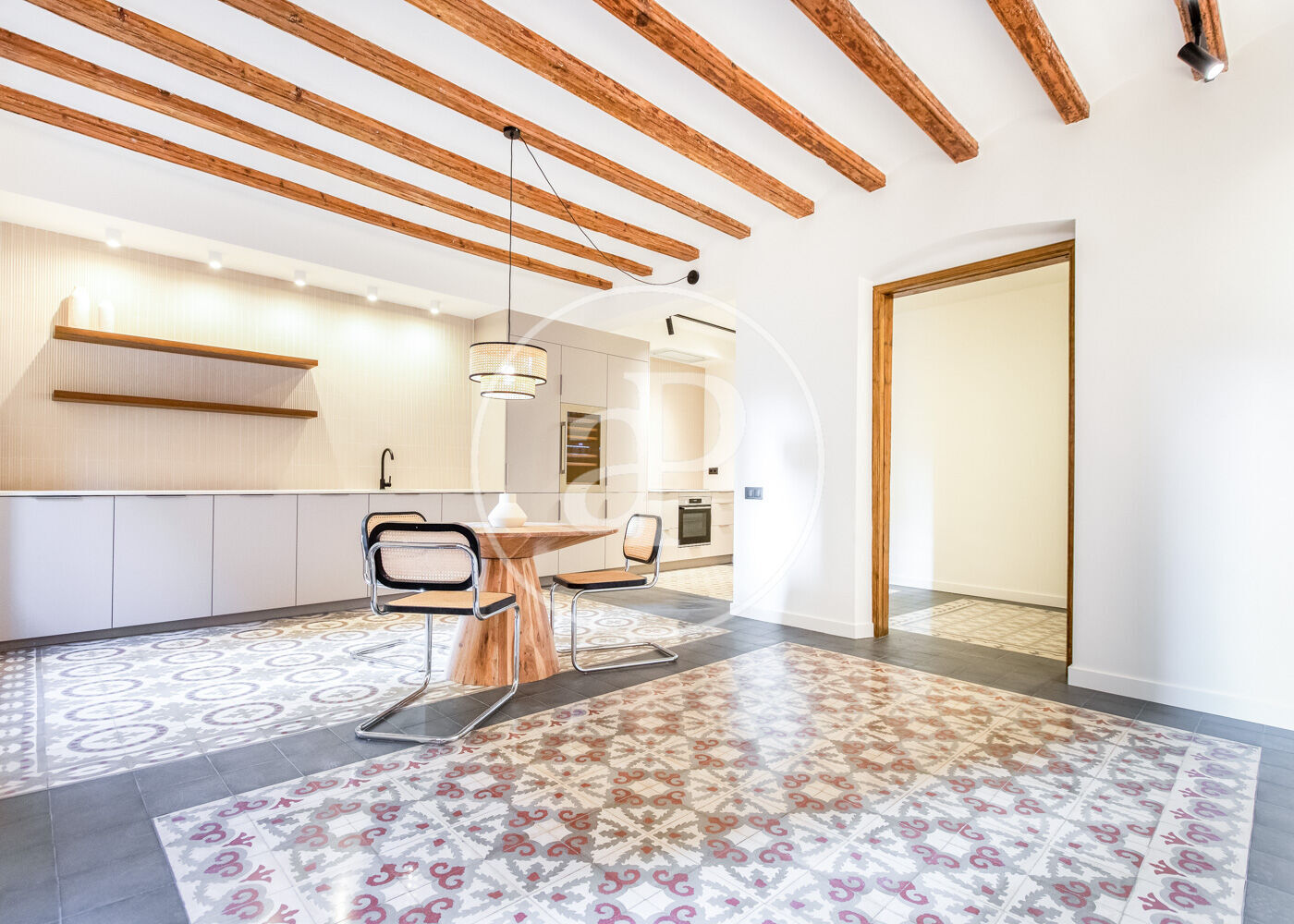 La propiedad ha sido renovada empleando acabados de primera calidad y mucha atención a los detalles. Sus techos altos con vigas de madera y sus suelos hidráulicos perfectamente recuperados junto con su moderno diseño moderno confieren a la vivienda mucho encanto y personalidad.