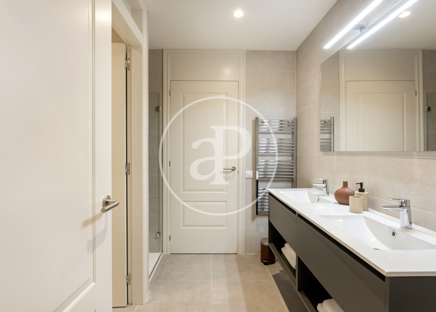 Descubre el encanto de esta excepcional residencia, estratégicamente ubicada junto al sereno cauce del río Turia y a pocos pasos de reconocidos centros comerciales. Al ingresar a esta impresionante vivienda, serás recibido por un amplio recibidor que te guiará hacia un dormitorio doble, bañado por la luz natural que se filtra a través de sus ventanales exteriores. El acogedor salón, inundado de luminosidad, presenta un encantador balcón que invita a disfrutar de momentos de relax y contemplación. A lo largo del pasillo, aguardan el resto de las habitaciones, dos de ellas dobles, mientras que la principal se distingue por su elegancia y comodidad, acompañada de un baño en suite equipado con bañera y acceso directo a una espléndida terraza de 150 m². Este espacio al aire libre se erige como el escenario perfecto para reuniones, relajarse bajo el sol o simplemente contemplar las vistas panorámicas que lo rodean. La propiedad también cuenta con otro baño completo independiente para mayor comodidad. Cada habitación está equipada con un split de aire acondicionado, mientras que la calefacción central garantiza una temperatura confortable en todo momento del año. Situada en la primera planta de una finca bien posicionada en el consolidado barrio de Campanar, esta residencia ofrece un entorno tranquilo y familiar, con todos los servicios al alcance de la mano. Desde supermercados, como el Centro Comercial Nuevo Centro y Decathlon, hasta paradas de metro y autobús, farmacias y hospitales, todo lo que necesitas está a pocos minutos de distancia. Sumérgete en la serenidad de este vecindario, donde la calidad de vida se fusiona con la comodidad y la accesibilidad.