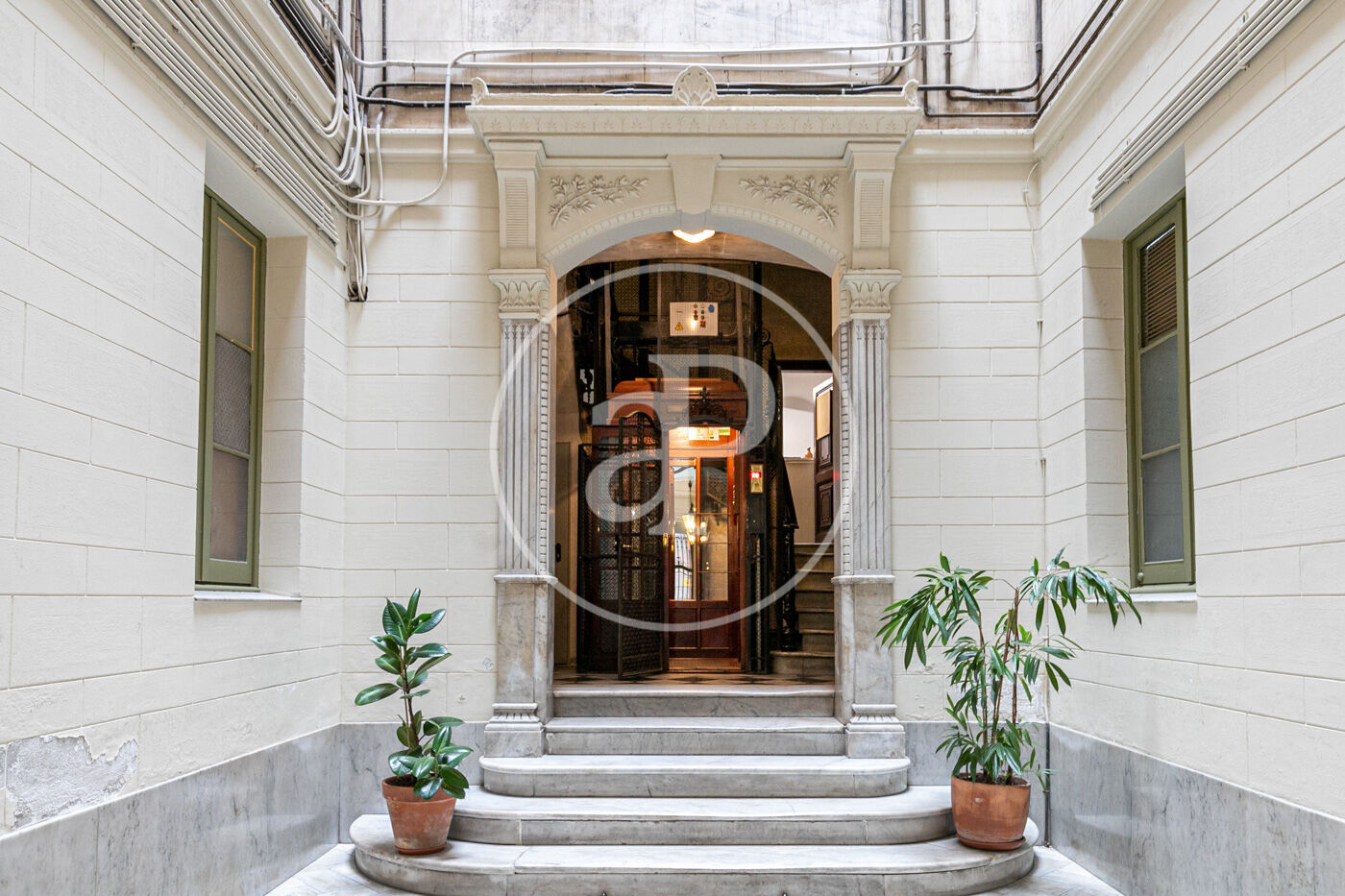 En el corazón de la ciudad, a pocos metros de Portal del Ángel y muy cerca de la Catedral, encontramos esta preciosa vivienda de 112m2 construidos y con terraza de 106m2 según plano en finca regia con ascensor y servicio de portería.