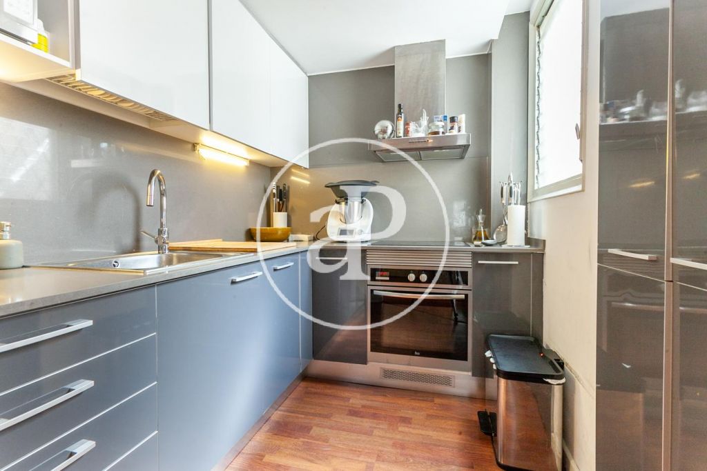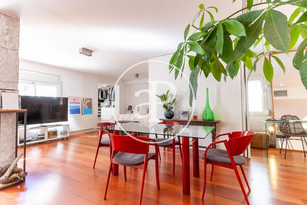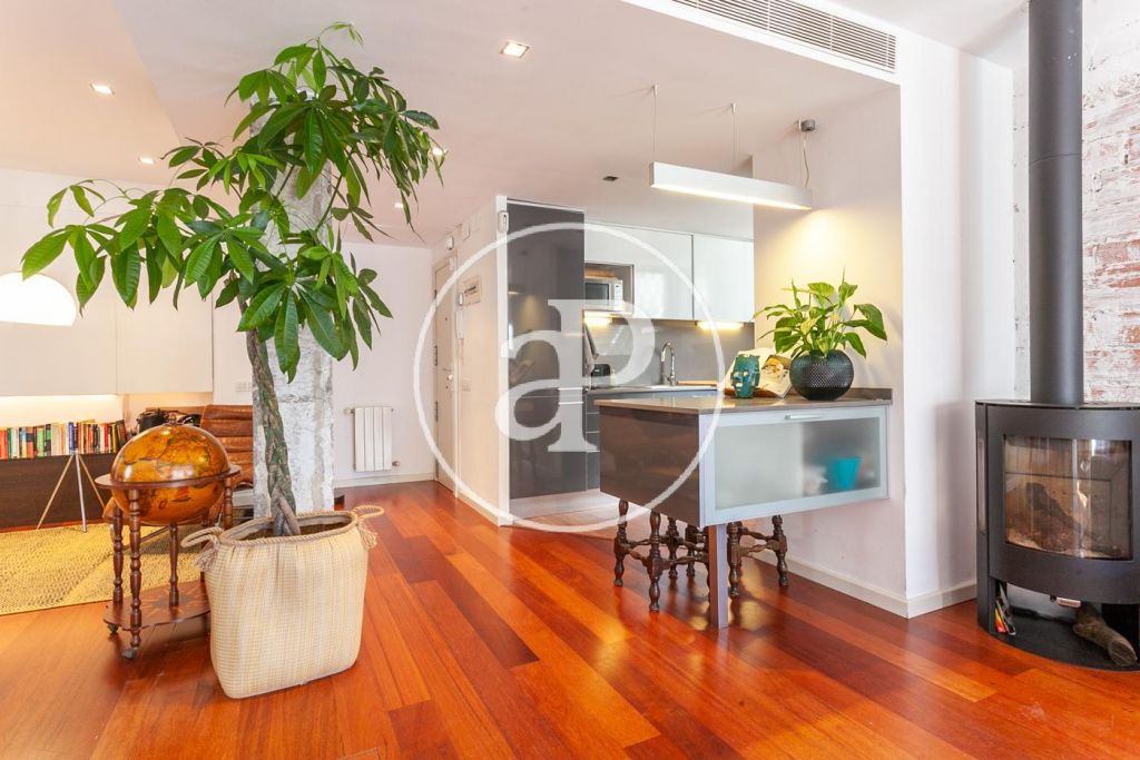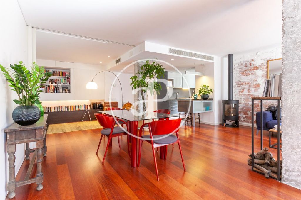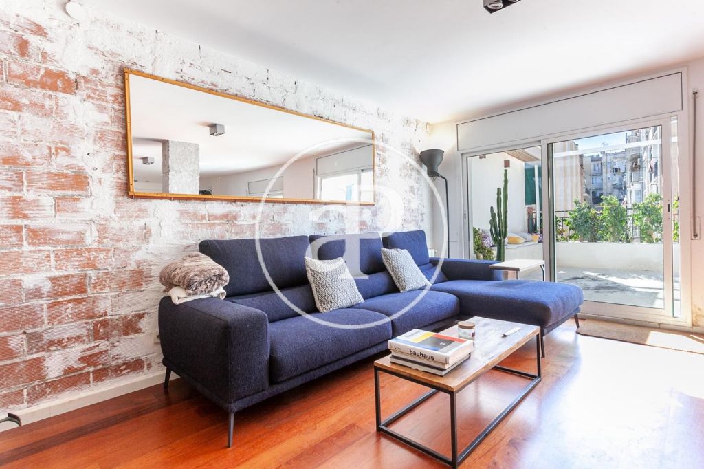 Ubicado en el Barrio del Poble Sec, a unos pasos de la Avenida Paralelo, rodeado de restaurantes, comercios, transporte público y muy bien conectado con los accesos de la Ciudad. Encontramos este encantador ático amueblado de diseño, se trata de un piso moderno y funcional de 96m² con 26m² de terraza.