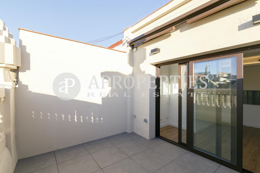 Precioso ático de 60m² sin amueblar en Paralel, junto al famoso Molino, teatros, conocidos restaurantes y con una reciente reforma de vialidad para todos sus alrededores. El piso cuenta con un salón con acceso a la terraza, por ello encontramos muchísima luz y la cocina se encuentra totalmente equipada. Tiene una habitación doble en suite con armarios empotrados. La finca tiene ascensor y acaba de ser reformada totalmente tanto por dentro como por fuera, todo a estrenar.